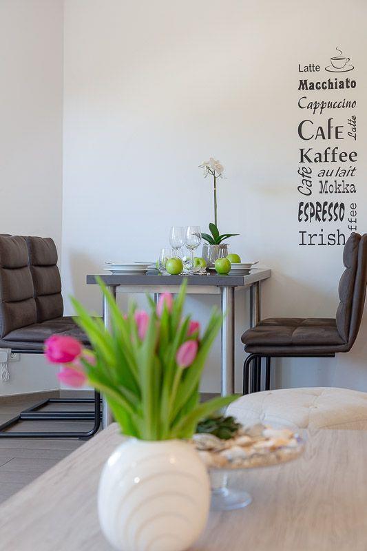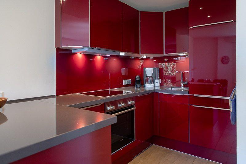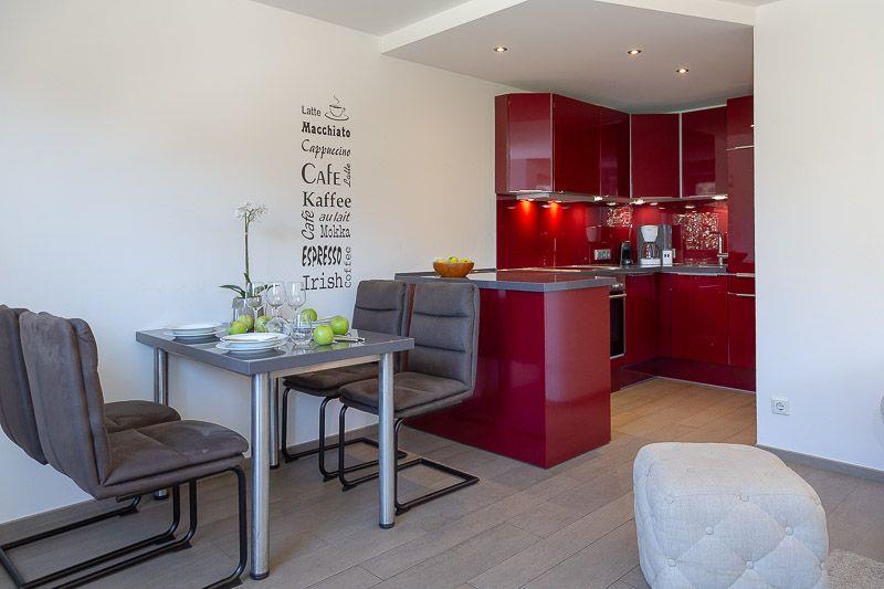 Die moderne Küche ist offen zum Wohnzimmer gestaltet und umfassend ausgestattet. Sie finden hier einen Ceran-Herd, einen Backofen, eine Spülmaschine sowie einen Kühlschrank mit integriertem Gefrierfach. Für Ihre Kaffeevorlieben stehen sowohl eine klassische Kaffeemaschine als auch eine Nespresso-Espressomaschine und ein Wasserkocher bereit. Geschirr, Besteck und verschiedene Küchenutensilien werden bereitgestellt, zudem gehören Geschirrhandtücher zur Erstausstattung.