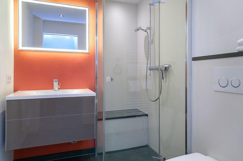 Das Tageslichtbad verfügt über eine bodengleiche Dusche, ein WC, ein Waschbecken sowie einen beleuchteten Spiegel und einen zusätzlichen Kosmetikspiegel. Für Ihren Komfort werden Handtücher, Badetücher, Bettwäsche sowie ein Haartrockner gestellt. Ein Rauchmelder sorgt für zusätzliche Sicherheit.