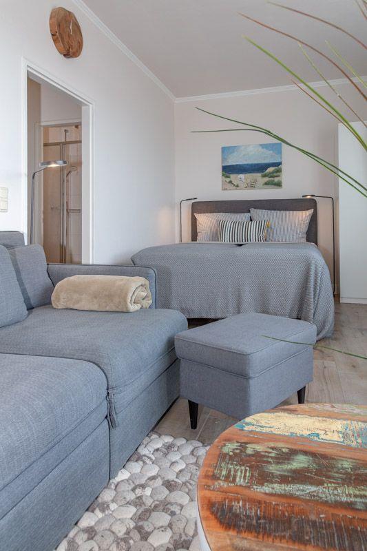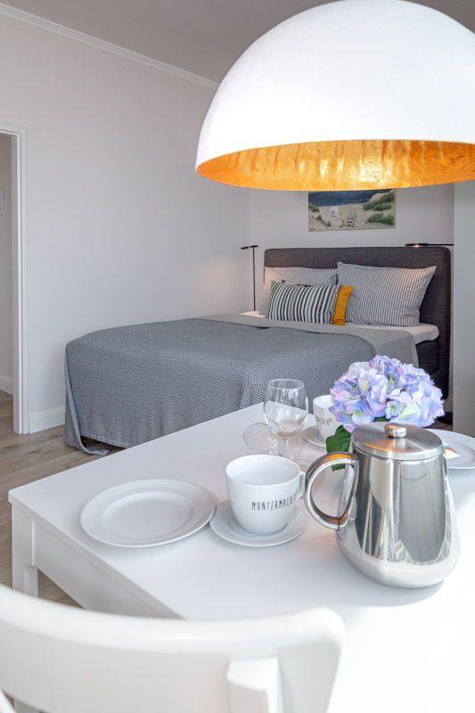 Großzügige 1 Zimmerwohnung in der obersten Etage eines 5 gesch. Appartementhauses am Westerländer Strand in prominenter Lage, nur wenige Augenblicke vom Strand entfernt. Genießen Sie den Luxus, die Ihnen diese Ferienwohnung bietet. Die Wohnung ist sehr modern und hochwertig ausgestattet, mit edlem Fliesenboden in BEACHHOUSE Optik. Sep. Küche mit Induktionsherd, Geschirrspüler, Nespresso© Maschine und vielen netten Extras. Das Highlight dieser Wohnung ist natürlich der sagenhafte Ausblick vom großzügigen Balkon. Von hier aus hat man (bei klarer Sicht) sogar den Weitblick auf das Wattenmeer, bis zu den Nachbarinseln. Der Blick über die City und die Nordsee sind aber immer garantiert. Auch für das Entertainment ist gesorgt: Ein überdimensionaler TV und freies W-LAN sorgen für Freude. Im Wohnzimmer befindet sich eine Schlafcouch, ein Essplatz und das große Boxspringbett. Die Wohnung hat ein Duschbad. Ein PKW Garagenstellplatz steht den Gästen der Wohnung kostenlos zur Verfügung. Die angegebenen Preise gelten für 2 Personen. Die Wohnung erreichen Sie entweder direkt aus der Garage oder ebenfalls ebenerdig durch den Hauseingang mit dem Fahrstuhl. Im Haus gibt es einen Waschraum mit Waschmaschinen und Trockner (Münzautomaten).