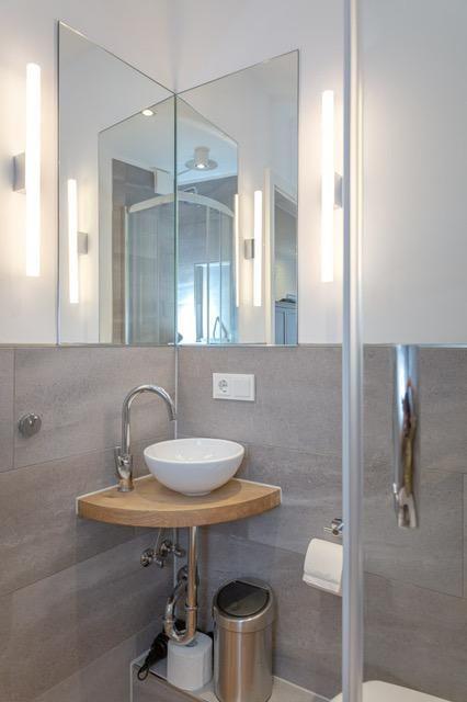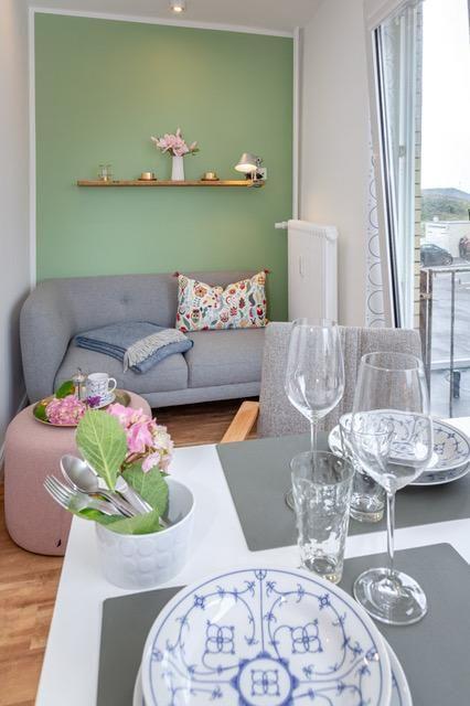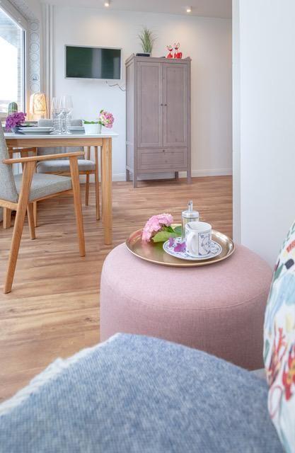Herzlich willkommen ...... Strandsuite Sylt. Bis zum Strand sind es 58 Schritte, in die Friedrichstraße noch weniger - und zum Bahnhof zehn Minuten zu Fuß. Die 2019 komplett neu eingerichtete Strandsuite bietet eine, wenn nicht die beste Lage in Westerland. Direkt am Ende der Fußgängerzone, und dennoch ruhig gelegen an zwei Strandübergängen (BADEZEIT und Friedrichstraße). Vom gemütlichen Sofa aus, beim Glas Wein am Esstisch und auf dem kleinen West-Balkon sehen Sie die Wellen der Nordsee (kleiner Meerblick). Sie hören das Rauschen der Brandung, das Kreischen der Möwen, in direkter Nachbarschaft zur City. Die lichtdurchflutete Suite bietet auf 21 Quadratmetern alles, was Sie für Ihre Auszeit allein oder zu zweit benötigen. Das hochwertige Nehl-Schrankbett verfügt über eine Taschenfederkern-Matratze in der Komfortgröße 160 x 205 cm. Ihre Unterkunft besteht aus einem kombinierten Wohn-Schlafzimmer, einer voll ausgestatteten Nobilia-Markeneinbauküche und einem Dusch-Bad. Mit ihren modernen Möbeln und viel Liebe zum Detail ist die Strandsuite ein Kleinod für Gäste, denen ein Hotelzimmer zu unflexibel ist. Die Küche ist komplett und hochwertig ausgestattet. Sie haben die Wahl zwischen einer Nespresso- und eine Filterkaffeemaschine. Ceranfeld, Geschirrspüler, Backofen und ein Kühlschrank mit Gefrierfach bieten den Komfort, den Sie von zu Hause kennen. Die meisten Geräte sind von Neff bzw. Bosch. Das mit Villeroy & Boch-Fliesen ausgestattete Bad bietet Ihnen auf kleinem Raum (ca. 3 m²) Dusche, WC, Waschbecken und Handtuch-Heizung. Ein durchdachtes Lichtkonzept mit mehreren Dimmern sowie Designer-Leuchten sorgen für wohlige Beleuchtung im Wohn-Schlafzimmer und im Bad. Technisch befindet sich die Suite auf dem neuesten Stand. Sie erwartet ein 43"-Fernseher mit Netflix und Kabelanschluss, kostenloses W-LAN und ein hochwertiger Bluetooth-Lautsprecher von Bose. Die Strandsuite befindet sich im 1. Stock eines vierstöckigen gepflegten Apartmenthauses und ist per Treppe und Fahrstuhl erreichbar. Waschmaschine und Trockner sind im Keller (Münzautomat), direkt vor dem Haus befindet sich ein Fahrradständer. Falls Sie mit Ihrem Auto anreisen – ein öffentlicher Parkplatz ist nur wenige Fußminuten entfernt. Aus Rücksicht auf andere Gäste: keine Raucher, keine Tiere, keine Ausnahme.