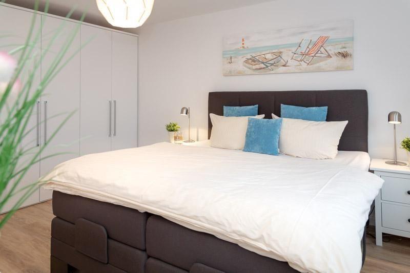 Westerland- Wohnung Sommerset, direkt am Strand- Die komplett renovierte und im lässig-gemütlichen Hamptons-Stil eingerichtete Wohnung liegt nur gute 100 Meter von der Westerländer Strandpromenade und dem beliebten Brandenburger Strand entfernt im Appartementhaus Windhuk. Das helle, moderne Appartement hat eine Wohnfläche von ca.58 Quadratmetern und ist ausgestattet mit vielen liebevoll netten maritimen "Hinguckern" dekoriert. Hier gehört das dezente Meeresrauschen im Hintergrund quasi zum Inventar. Das Appartement hat ein großzügiges, ruhiges Schlafzimmer (mit TV), sowie zusätzlich eine ausklappbare Multifunktionscouch im Wohnbereich. Die moderne Küche ist offen im Wohnbereich integriert. Hier wird es Ihnen an nichts fehlen: Backofen Gefrierfach, Geschirrspüler, Kaffeemaschine, Kühlschrank, Mikrowelle, Wasserkocher sind vorhanden. Ebenso ein großer W-LAN fähiges TV. Freies Internet ist selbstverständlich für die Gäste dieser Wohnung ebenfalls vorhanden. Das eben top sanierte Bad hat eine großzügige Regendusche. Auch ein Föhn ist vorhanden. Auf dem nach Westen ausgerichteten Balkon kann man in den Sommermonaten dann nach einem schönen Strandtag, noch einen Sundowner genießen. Die Wohnung befindet sich in der 3. Etage, am Ende des Ganges, in ruhiger Lage im Haus. Zu dieser Wohnung gehört ein fester kostenloser PKW Außenstellplatz. Im Kellerbereich des Hauses befinden sich Waschmaschinen und Trockner (gegen Gebühr). Das Haus hat einen ebenerdigen Fahrstuhl. Die City und den Strand erreichen Sie in wenigen Minuten fußläufig. Ein tolles, modernes Appartement erwartet Sie. Herzlich willkommen im ( Nichtraucher) Appartement Sommerset. Übrigens nette Hunde (10€ pro Tag) sind hier willkommen.