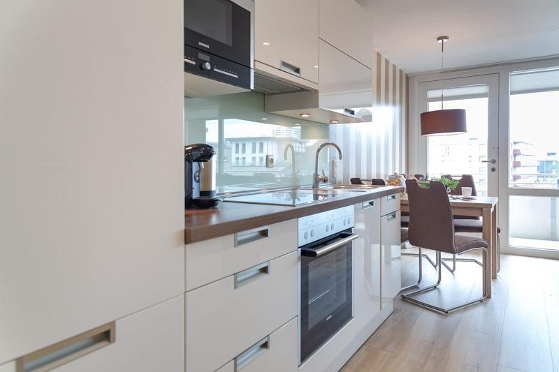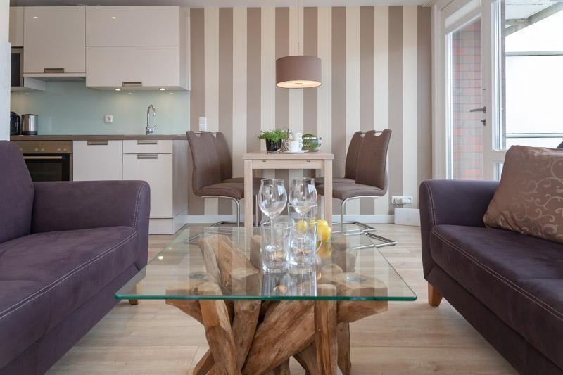 Westerland - Beste Lage am Strand mit Balkon in der 2. Etage. Großes Strandappartement mit ca. 55m² in bester Lage von Westerland, direkt am Strandübergang, sowie der City. Ideal für den Eigennutz, mit gelegentlichen Abstechern nach Sylt, oder auch für die Ferienvermietung mit allerbesten Ergebnissen. Dieses moderne, eben renovierte Appartement befindet sich in der 2. Etage eines 4 geschossigen Appartementhauses aus 1970, in direkter Strand- und Citylage. Die Aufteilung wurde während der Renovierung der Wohnung neu gestaltet. Der Küchenbereich wurde in den Wohnbereich integriert. Der Wohnbereich mit vorgelagertem großen Balkon erscheint durch die Südlage hell und freundlich. In den Sommermonaten kann man hier herrlich Frühstücken und den ganzen Tag die Sommersonne genießen. Weiter erwartet Sie hier ein großzügiges, helles Duschbad, sowie 2 Schlafzimmer. Die Wohnung ist mit modernem Designboden in Holzoptik ausgelegt. Die Wände sind verputzt und mit Malervlies versehen. Die hochwertige Möblierung, sowie die helle Küche werden Sie begeistern. Im Haus befinden sich eine Gemeinschaftswaschküche mit Münzautomaten (Waschmaschine und Trockner), zwei Abstellräume für Fahrräder, sowie ein neuer Fahrstuhl. Von der Wohnung aus gehen Sie ca. 2 Minuten an den Strandübergang und die Promenade. Ideal für eine Familie bis zu 4 Personen. Dies ist eine Nichtraucherwohnung, Tiere sind auf Anfrage erlaubt.