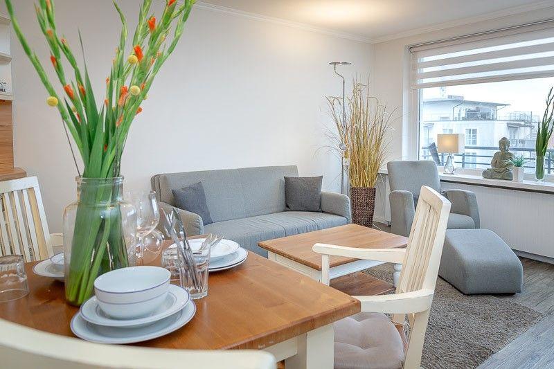 Wohnung Meeresrauschen: Elisabethstraße 9 - Diese modern eingerichtete 2-Zimmer-Wohnung befindet sich in der 3. Etage des Hauses Dünenburg in Südausrichtung.