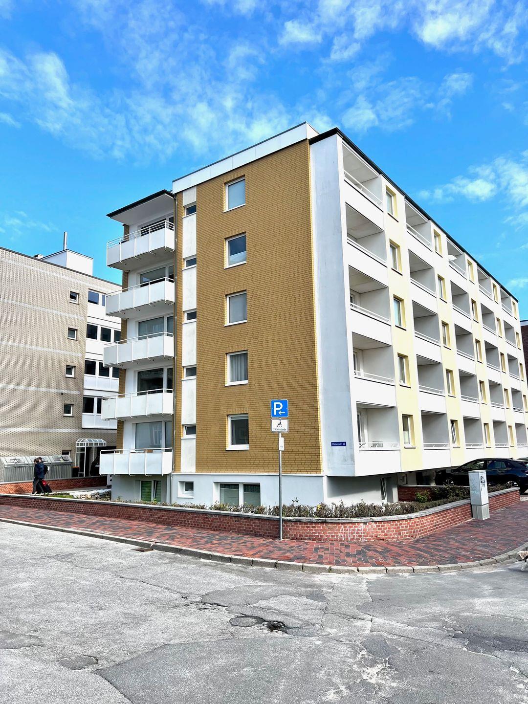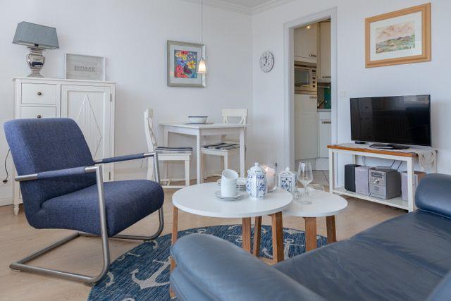 2-Zimmer-Wohnung mit tollem Ausblick auf die Nordsee. Das Appartement befindet sich in der 4. Etage in einem mehrstöckigen Appartementhaus, direkt am Strandübergang.