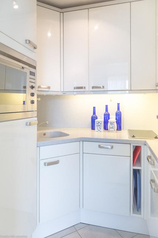 Die Ferienwohnung selbst ist im vierten Stock des Hauses gelegen und bietet einen herrlichen Meerblick, der Ihnen nicht nur bei Sonnenaufgang, sondern auch während des ganzen Tages ein Lächeln ins Gesicht zaubert. Die offene Küche zum Wohnzimmer ist modern ausgestattet mit allen nötigen Annehmlichkeiten wie einem Kühlschrank, Herd, Spülmaschine, Mikrowelle und einer Kaffeemaschine. Hier können Sie leckere Mahlzeiten zubereiten und diese am Esstisch im Wohnzimmer genießen. Die gemütliche Sofaecke lädt zudem zum Entspannen ein, sei es mit einem guten Buch oder einem Film auf dem 25-34 Zoll großen Fernseher.