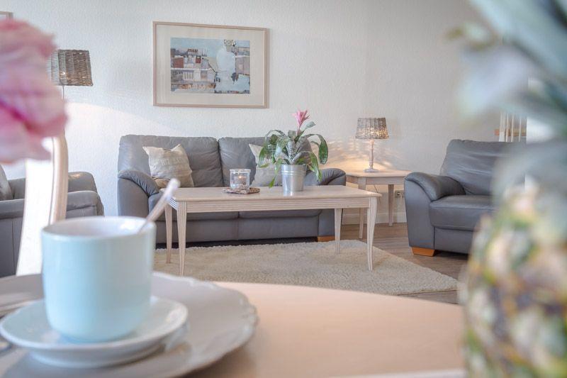 Westerland, in der Friedrichtstraße, am Strand. Großzügiges Maisonetten-Appartement für 2-4 Personen, in bester Lage. Großer Wohnbereich mit abget. Essbereich, moderne Ausstattung mit Ledersitzmöbel. Küche mit Backofen, 4 Plattenherd, Geschirrspüler, Loggia zur Friedrichstraße (Fußgängerzone) mit kl. Meerblick. Im Obergeschoss: Vollbad, 2 Schlafzimmer (1x Doppelbett und 2x Einzelbett). Den Gästen steht ein Stellplatz in der Tiefgarage (Verschiebeplatte mit eingeschränkten Maßen) zur Verfügung. Eine Waschküche mit Münzautomaten befindet sich im Haus. Um die Ecke findet man einen Fahrradverleih und einen Bäcker. Der Strand liegt nur wenige Augenblicke von der Haustür entfernt. Ein tolles Familien- Appartement mit gehobener Ausstattung in schöner Atmosphäre. Alle Annehmlichkeiten sind zu Fuß schnell erreicht. Die Preise in Saison B und C beziehen sich auf eine Belegung mit 2 Personen (weitere Pers. je 10,-/ Tg).