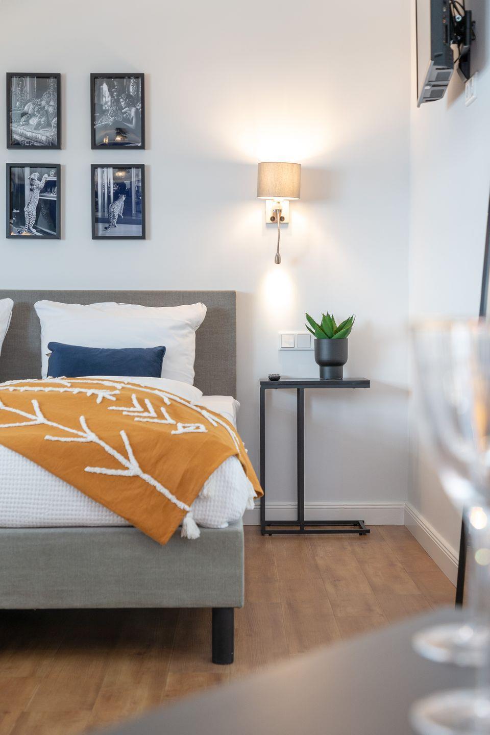 komfortables Bett (160x200), das Ihnen eine erholsame Nachtruhe garantiert. Das moderne Badezimmer ist mit einer Dusche ausgestattet und sorgt für zusätzlichen Komfort während Ihres Aufenthalts.