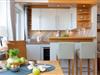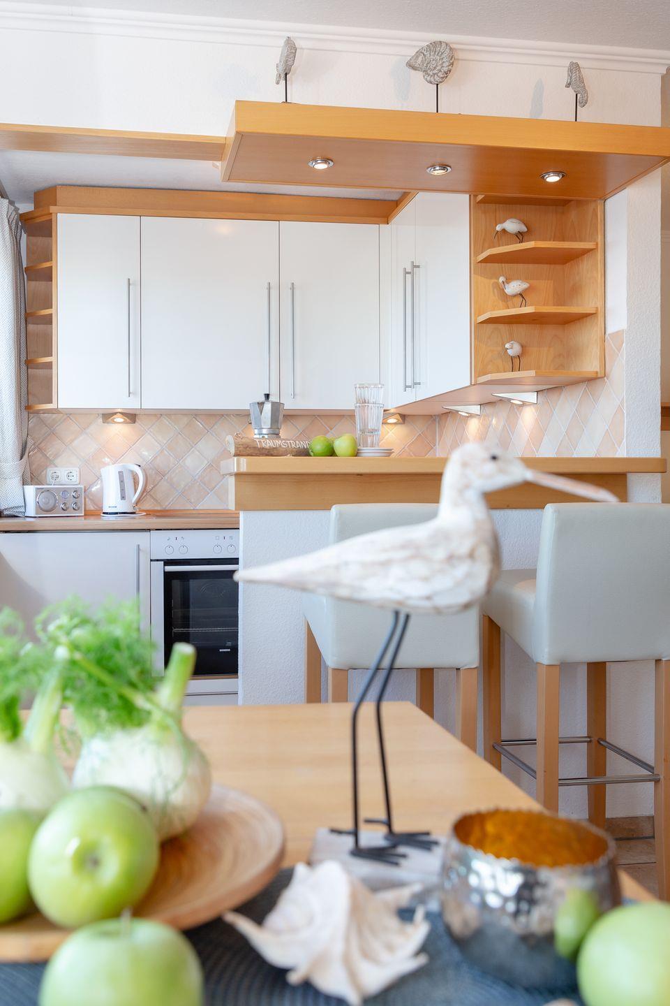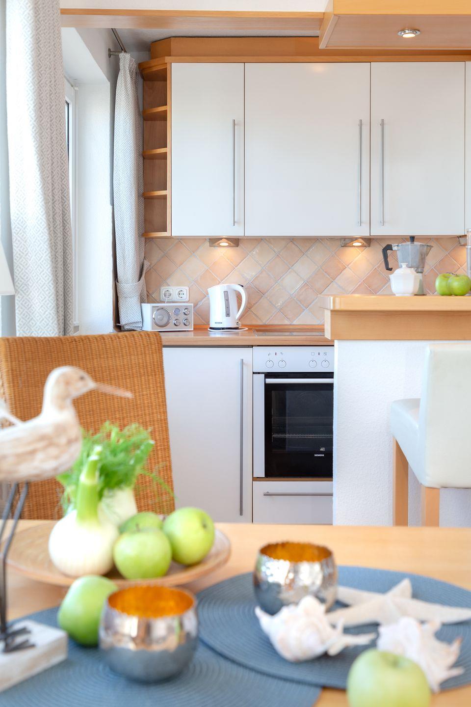 Die Wohnung befindet sich in der sechsten Etage und ist bequem mit dem Aufzug erreichbar. Ein offenes Wohnkonzept verbindet die voll ausgestattete Küche mit dem gemütlichen Wohnzimmer. Hier finden Sie nicht nur moderne Annehmlichkeiten wie einen Ceranfeldherd, einen Backofen und eine Spülmaschine, sondern auch einen Kühlschrank mit Gefrierfach, eine Nespresso-Espressomaschine, Kaffeemaschine sowie zahlreiche Küchenutensilien. Kochen Sie Ihre Lieblingsgerichte oder bereiten Sie ein romantisches Frühstück für den perfekten Start in den Tag.