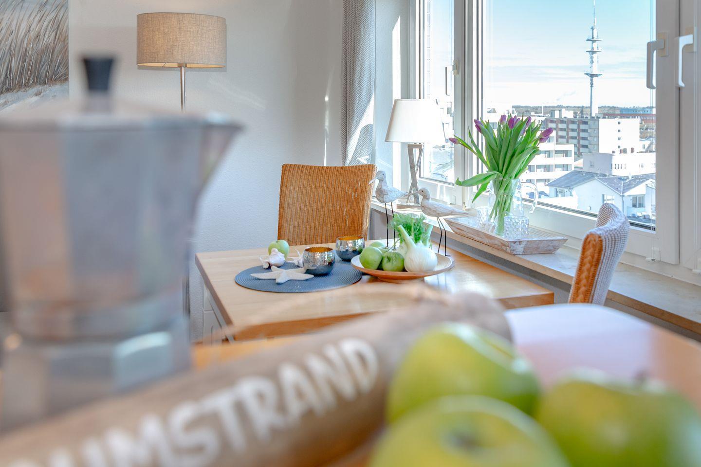 Diese schicke Wohnung steht mit seinem modernen Komfort dem Sylter Strandliebhaber zur Verfügung. Die Wohnung liegt in der 6. Etage eines Appartementhauses in der Andreas Dirks Straße, nur unweit der City und dem Strand gelegen, mit einem tollen Ausblick über die Westerländer City bis zum Wattenmeer.