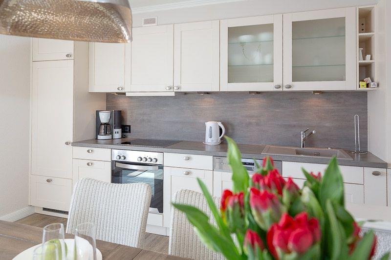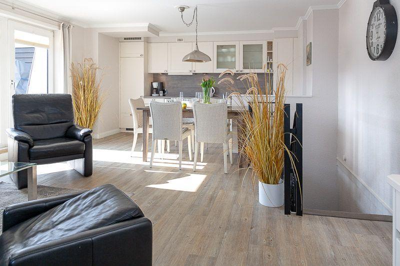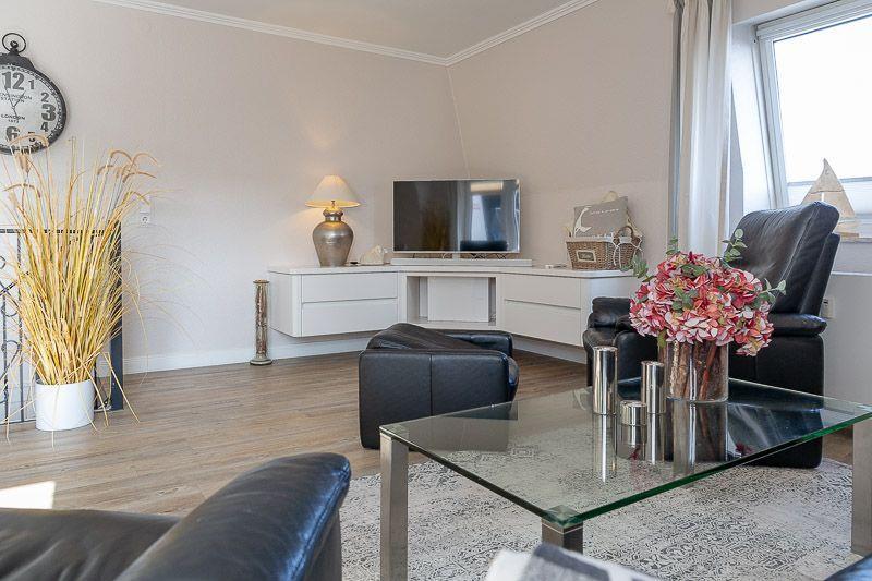 Die moderne und stilvoll eingerichtete Ferienwohnung erstreckt sich über drei Zimmer und verfügt über zwei komfortable Schlafzimmer, die Platz für bis zu vier Personen bieten. Hier können Sie nach einem erlebnisreichen Tag an der Nordsee zur Ruhe kommen. Ob Sie mit der Familie oder Freunden reisen, der offene Wohnbereich mit integriertem Essbereich und einer voll ausgestatteten Küche sorgt für einladendes Beisammensein. Kochen Sie gemeinsam oder genießen Sie einfach einen gemütlichen Abend auf dem Sofa, während Sie einen Film im Fernsehen schauen.