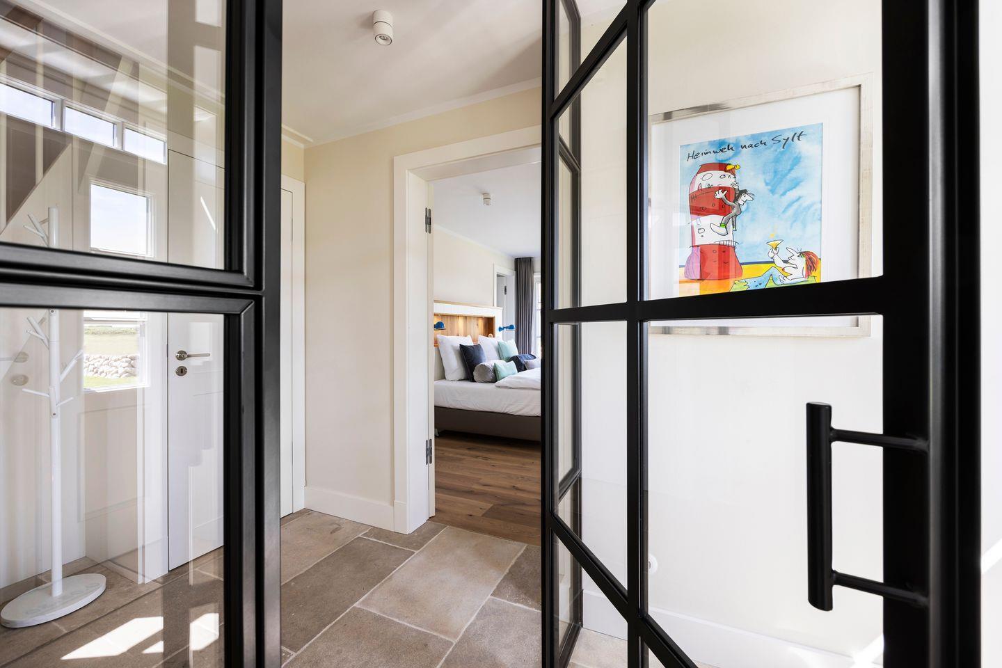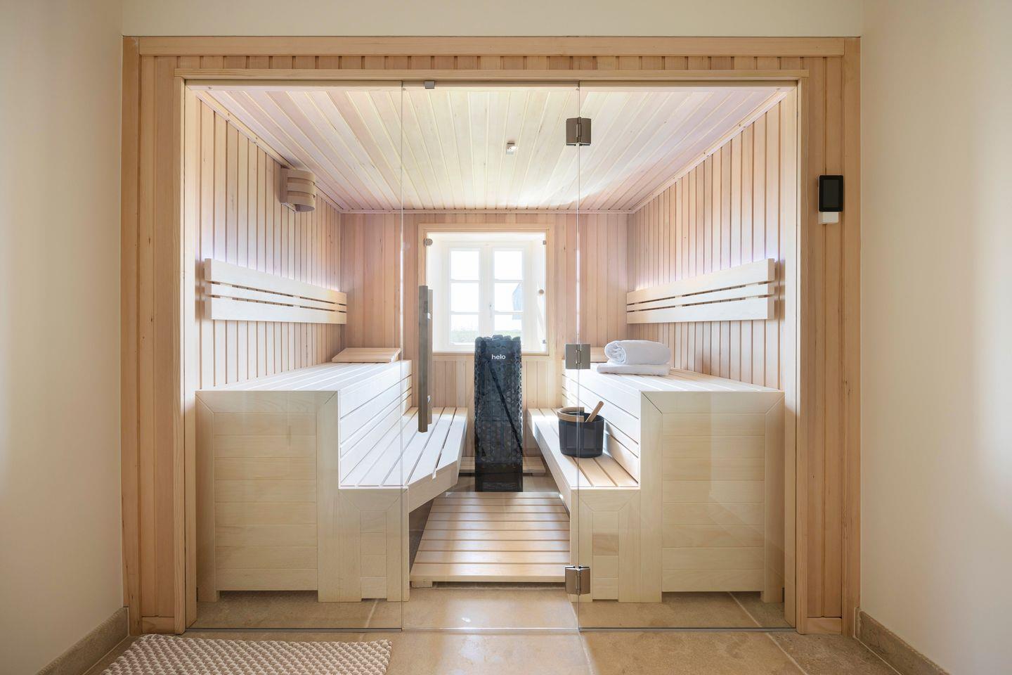 Ein besonderes Highlight des Hauses ist die im Obergeschoss integrierte finnische Sauna, die einen atemberaubenden Blick über die Sylter Wiesen bis nach Rantum bietet. Hier können Sie nach einem langen Tag am Strand die Seele baumeln lassen und wohltuende Wärme genießen.