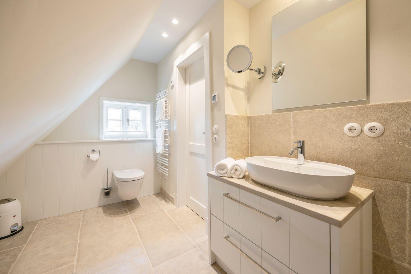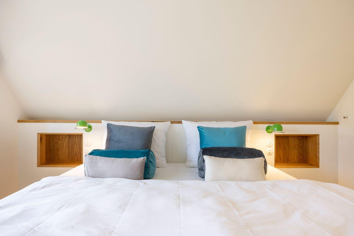 Die vier Schlafzimmer sind mit Boxspringbetten und stilvollem Interieur ausgestattet. Zwei der Schlafzimmer bieten Kingsize-Doppelbetten (200x200 cm), einen eingebauten Kleiderschrank, TV und ein eigenes Badezimmer mit Dusche, Fußbodenheizung und Tageslicht. Das dritte Schlafzimmer ist mit einem Boxspring-Einzelbett (90x200 cm) sowie TV und einem kleinen Schreibtisch eingerichtet – ideal für Ruhe suchende Gäste. Im vierten Schlafzimmer erwartet Sie ein großzügiges Kingsize-Boxspringbett (200x210 cm), ein eingebauter Kleiderschrank und ein angrenzendes Badezimmer, das mit einer Dampfdusche und Fußbodenheizung höchsten Komfort bietet.