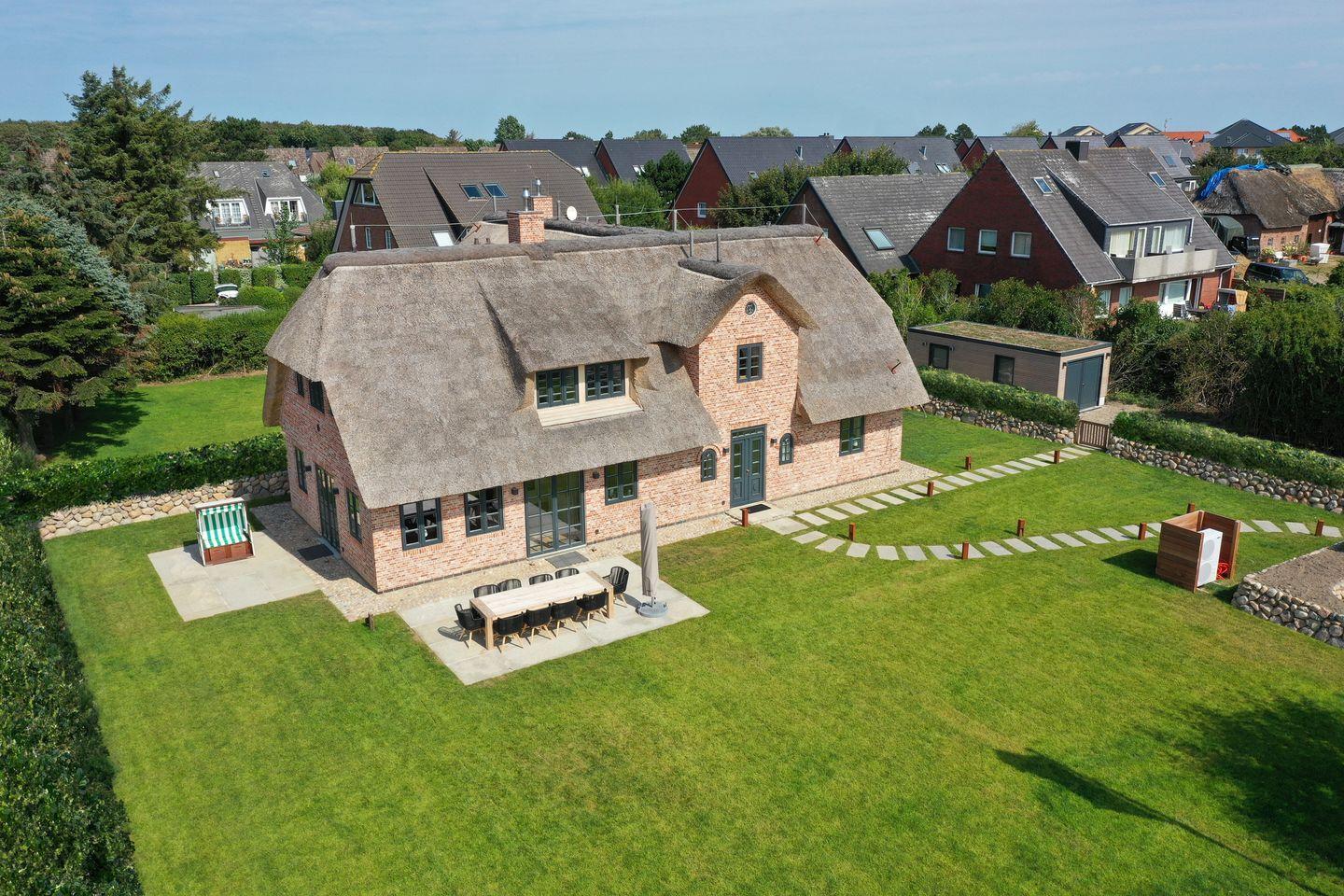Erleben Sie Sylter Luxus auf höchstem Niveau in diesem Neubau-Reetdachhaus „Koptainshüs Süd“ am Süderende in Westerland, das im August 2022 fertiggestellt wurde. Mit einer großzügigen Wohnfläche von ca. 220 m² auf zwei Ebenen und einem privaten Gartenareal von ca. 750 m² bietet dieses Domizil alles, was das Herz begehrt, und eignet sich ideal für bis zu 7 Personen.