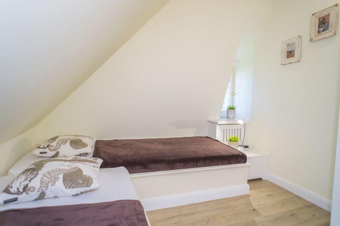Das nebenan gelegene Zimmer ist mit zwei Einbaubetten (je 80 x 200 cm) eingerichtet.