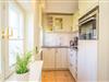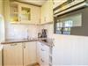 Die kleine Küchenzeile mit u.a. einer Spülmaschine verbirgt sich in einer an den Wohnraum grenzenden Nische.