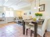 Zu ebener Erde liegt der einladende Wohn- und Eßraum mit Kamin.