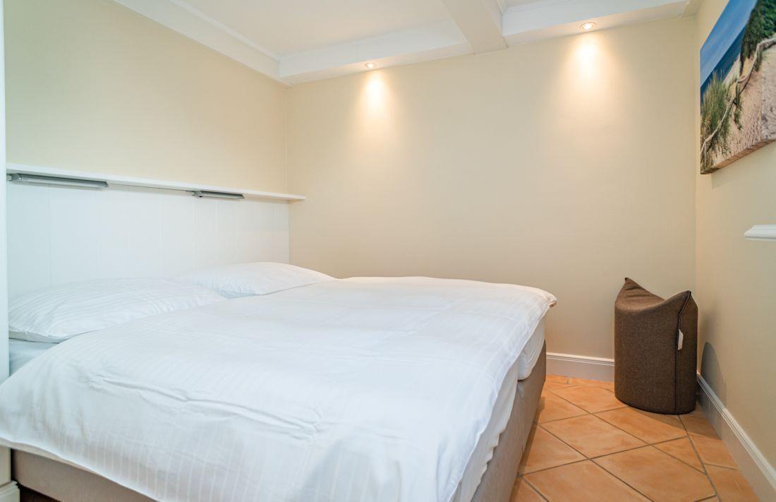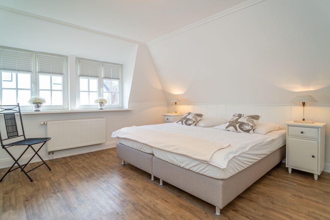 Ein Schlafzimmer eingerichtet mit einem Doppelbett ( Boxspringbett).