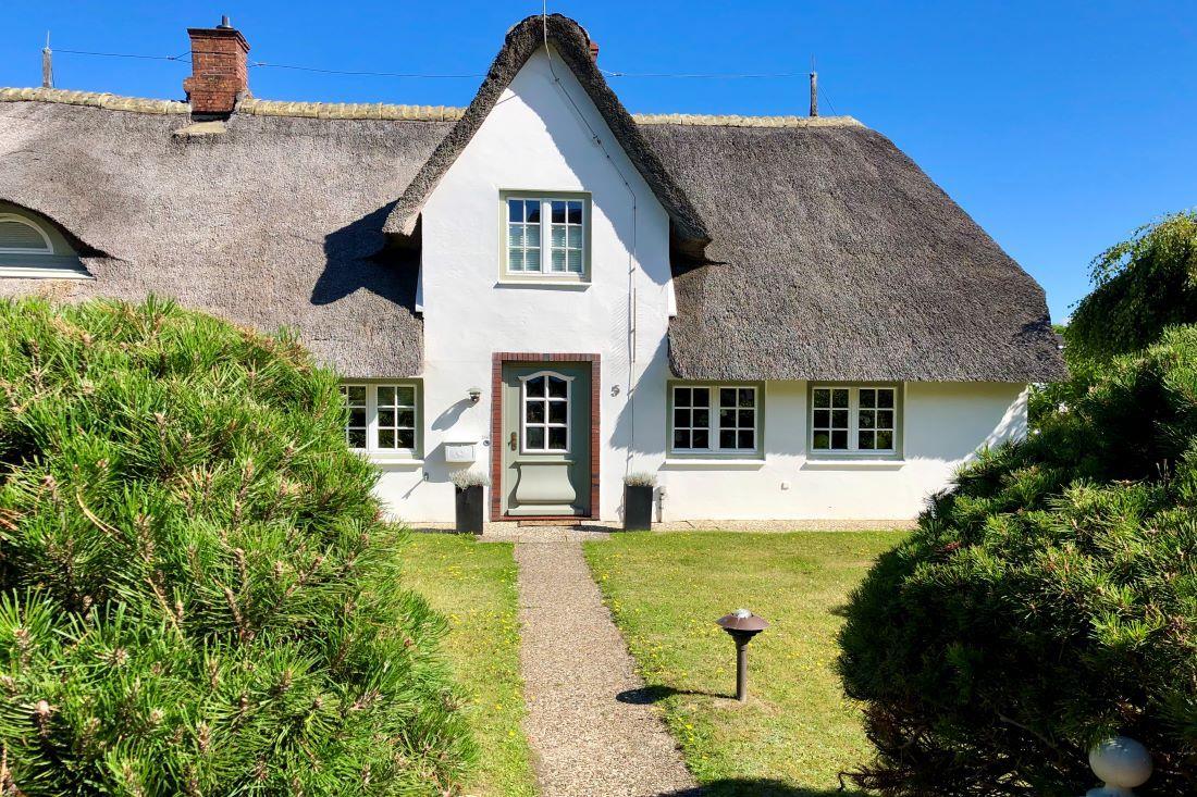 Reetgedeckte Friesenhaus Moi`s Hüs mit großzügiger Gartenanlage.