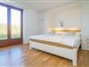 Gemütliches Schlafzimmer mit einem Doppelbett .