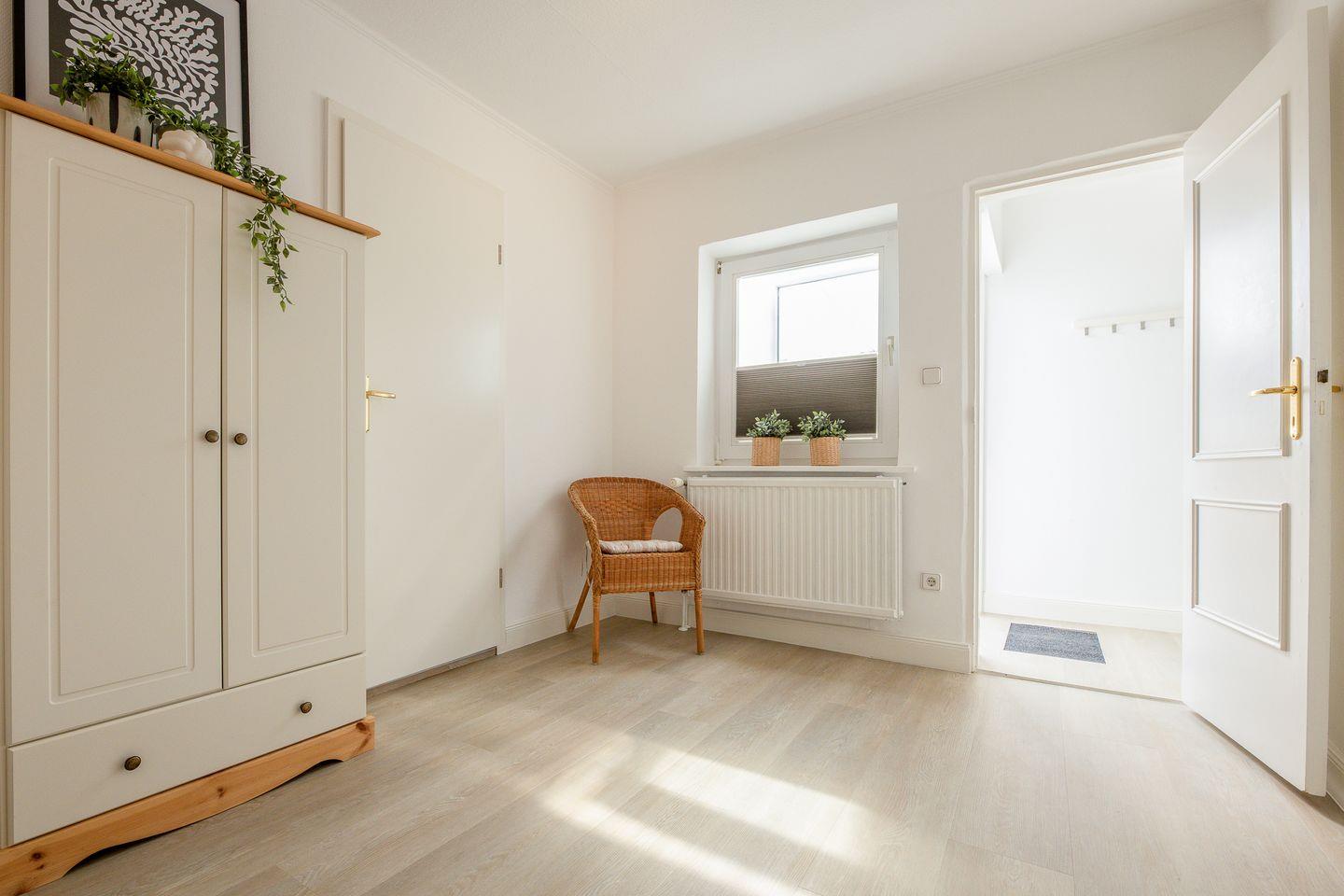 Viel Platz, viel Licht und viel Grün drumherum machen aus dem Appartement ein hübsches Familiennest zum Wohlfühlen. Der Eingang erfolgt durch den Wintergarten (nicht beheizbar), der nicht nur einen herrlichen Blick in den blühenden Garten, sondern auch Platz zum Essen und Chillen bietet.