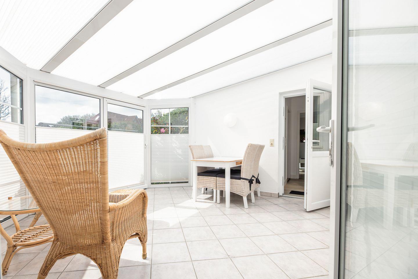 Mit seinem großen Wintergarten, eingebettet in den hübschen Garten macht Bungalow Flora seinem Namen alle Ehre.