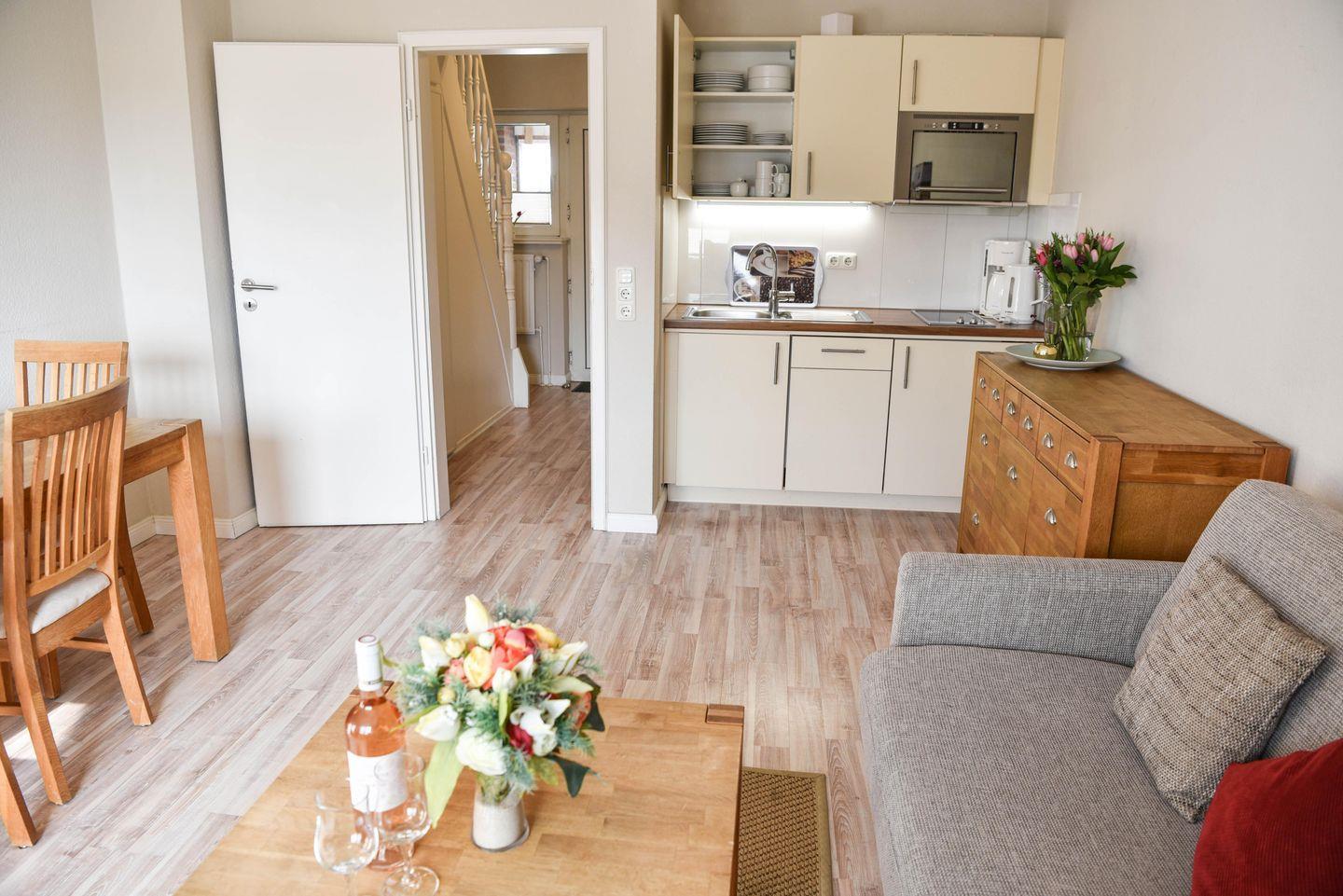 Moin und ein herzliches Willkommen in der Ferienwohnung „Mare Nostrum 11“. Sie liegt in der zweiten Etage eines überschaubaren Appartementhauses in unmittelbarer Strandnähe, hinter den Dünen von Westerland. Mit 50 Quadratmetern Größe und einem separaten Schlafzimmer perfekt für das Urlaubsglück von zwei Personen, aber auch mit vier Personen entspannt zu nutzen, da sich die gemütliche Couch im Wohnzimmer als vollwertiges Doppelbett zum Richtig-gut-Schlafen ausklappen lässt. Die offene Wohnküche (Farbton „Vanille“) ist voll ausgestattet, der Balkon im Sommer möbliert, ein eigener Parkplatz (Tiefgarage) und Waschmaschine/Trockner zur Gemeinschaftsnutzung stehen ebenfalls zur Verfügung. Das Tüpfelchen auf dem i an diesem Haus ist seine echt gute Lage: Keine zehn Minuten sind es von hier aus dieser ruhigen Straße bis zur quirligen Innenstadt mit allen Einkaufsmöglichkeiten, urigen Kneipen und attraktiven Restaurants. Und wer gerne vor dem Frühstück im Meer schwimmt, kann theoretisch in der Badehose „eben rüber laufen“ zum Strand, der ist hier nämlich keine zwei Minuten weit weg.