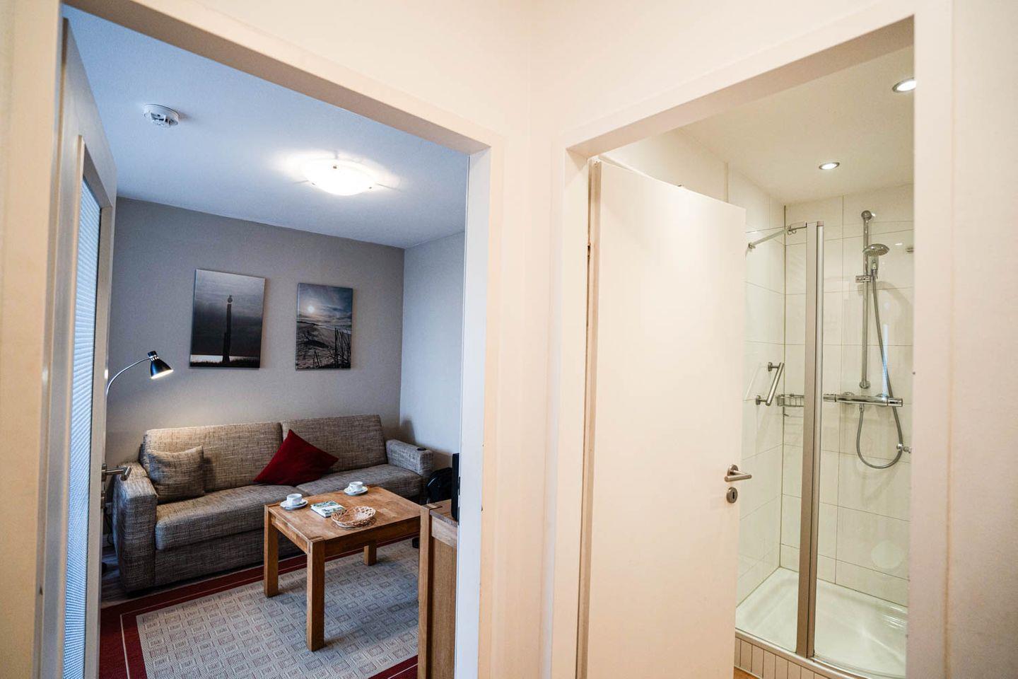 Moin und herzlich willkommen, sagt der „Muschelsucher“, der zu seinem Namen passend sehr nah am Strand residiert. Dieses gleichnamige, sehr gemütliche Ferien-Appartement, ist keine fünf Minuten zu Fuß vom Flutsaum entfernt und ein kleines Ferienvergnügen-Konzentrat: 44 Quadratmeter groß mit einem Extra-Schlafzimmer und einer Schlafcouch im Wohnzimmer bietet es Platz für bis zu vier Personen und hält ein attraktive Detail parat-den über Eck verglasten Essplatz mit Ausblick Richtung West und Nord.