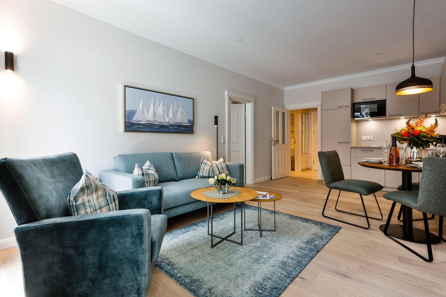 2-Zimmer-Ferienwohnung auf 1 Ebene (1.OG) in Westerland mit ca. 56 qm für bis zu 2 Personen.