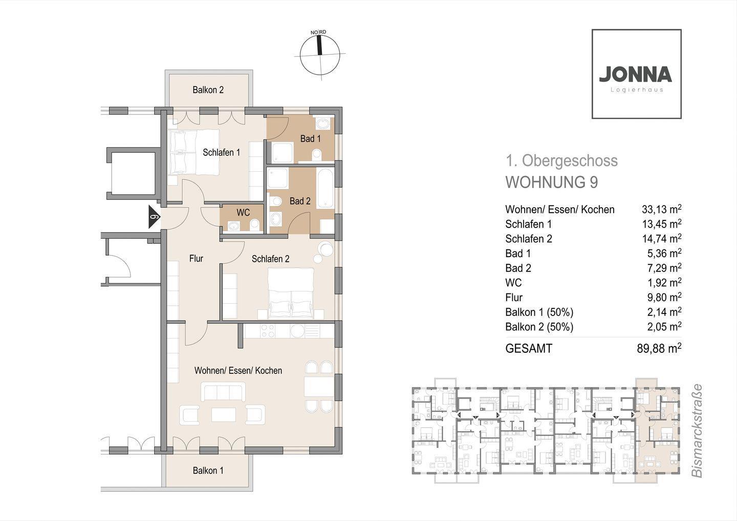 Diese moderne 3-Zimmer-Ferienwohnung im ersten Obergeschoss des Logierhauses Jonna bietet auf ca. 90 m² großzügigen Raum für bis zu 4 Personen. Verbringen Sie entspannte Urlaubstage auf Sylt in zentraler Lage von Westerland. Die Einkaufsmeile Friedrichstraße ist nur wenige Schritte entfernt und die Strandpromenade erreichen Sie fußläufig in ein paar Minuten. Genießen Sie die ruhige Atmosphäre dieser exklusiven Ferienwohnung, die mit Fußbodenheizung, zwei Balkonen in Süd- und Nordausrichtung und einem gemeinschaftlichen Wellnessbereich jeden Komfort für einen unvergesslichen Aufenthalt bietet.