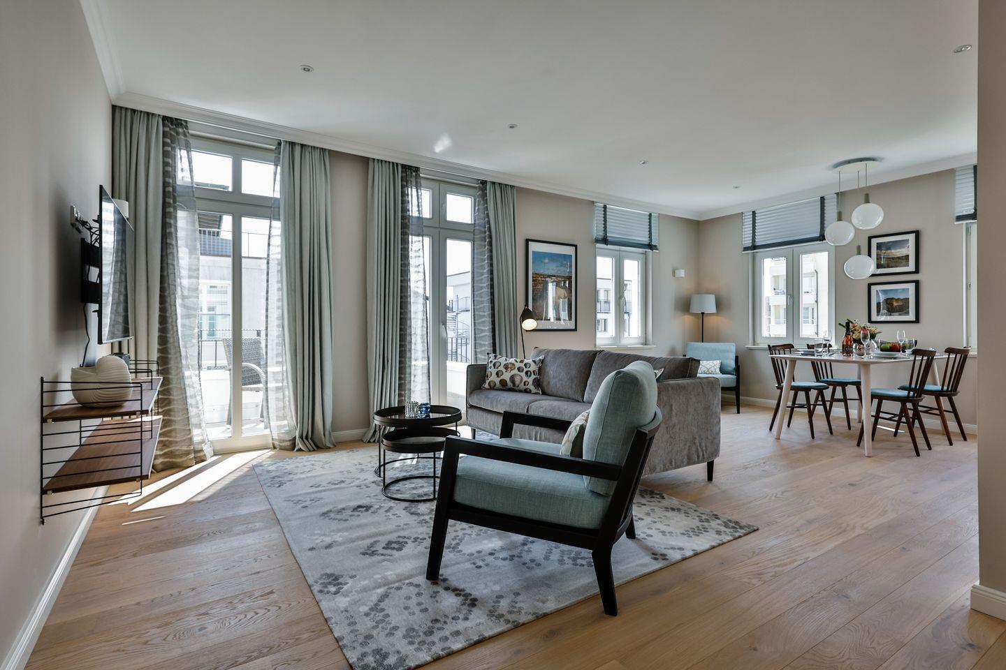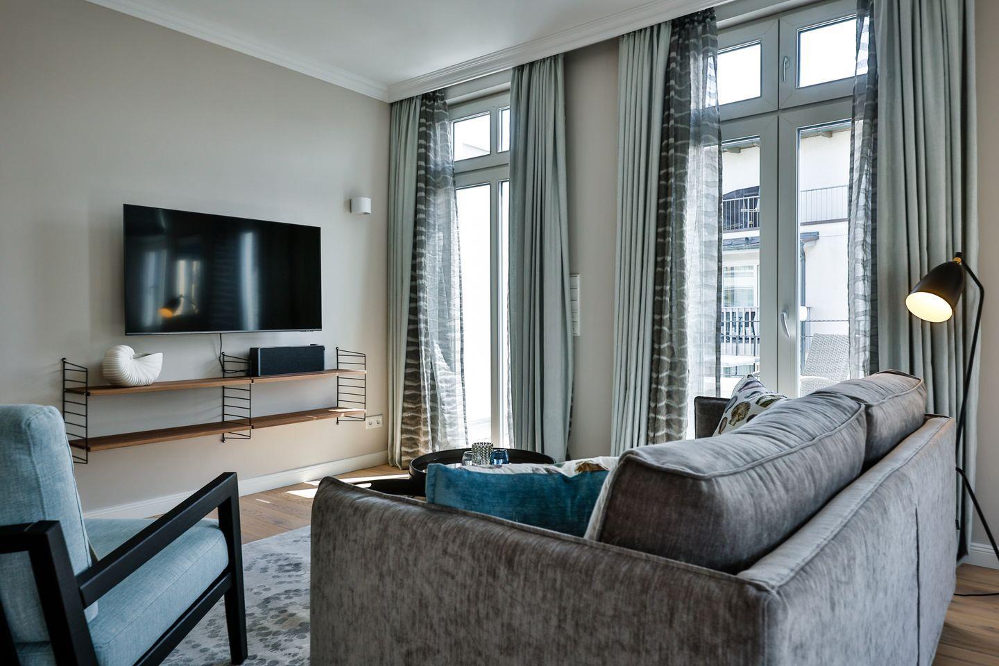 Der lichtdurchflutete Wohn- und Essbereich lädt zum Verweilen ein und hat einen direkten Zugang zum Südbalkon. Hier scheint für Sie die Sonne zu fast jeder Tageszeit. Lassen sie dort den Abend gemütlich ausklingen. Den Nordbalkon begehen Sie von einem der Schlafzimmer aus. Die hochwertige Loewe klang s3-Anlage sorgt für exzellenten Klangkomfort und verfügt über Digital-Radio, Bluetooth, CD-Player und USB-Anschlüsse. Eine moderne Einrichtung und das großzügige Raumangebot machen das Wohnzimmer zu einem Ort der Entspannung und Erholung.
