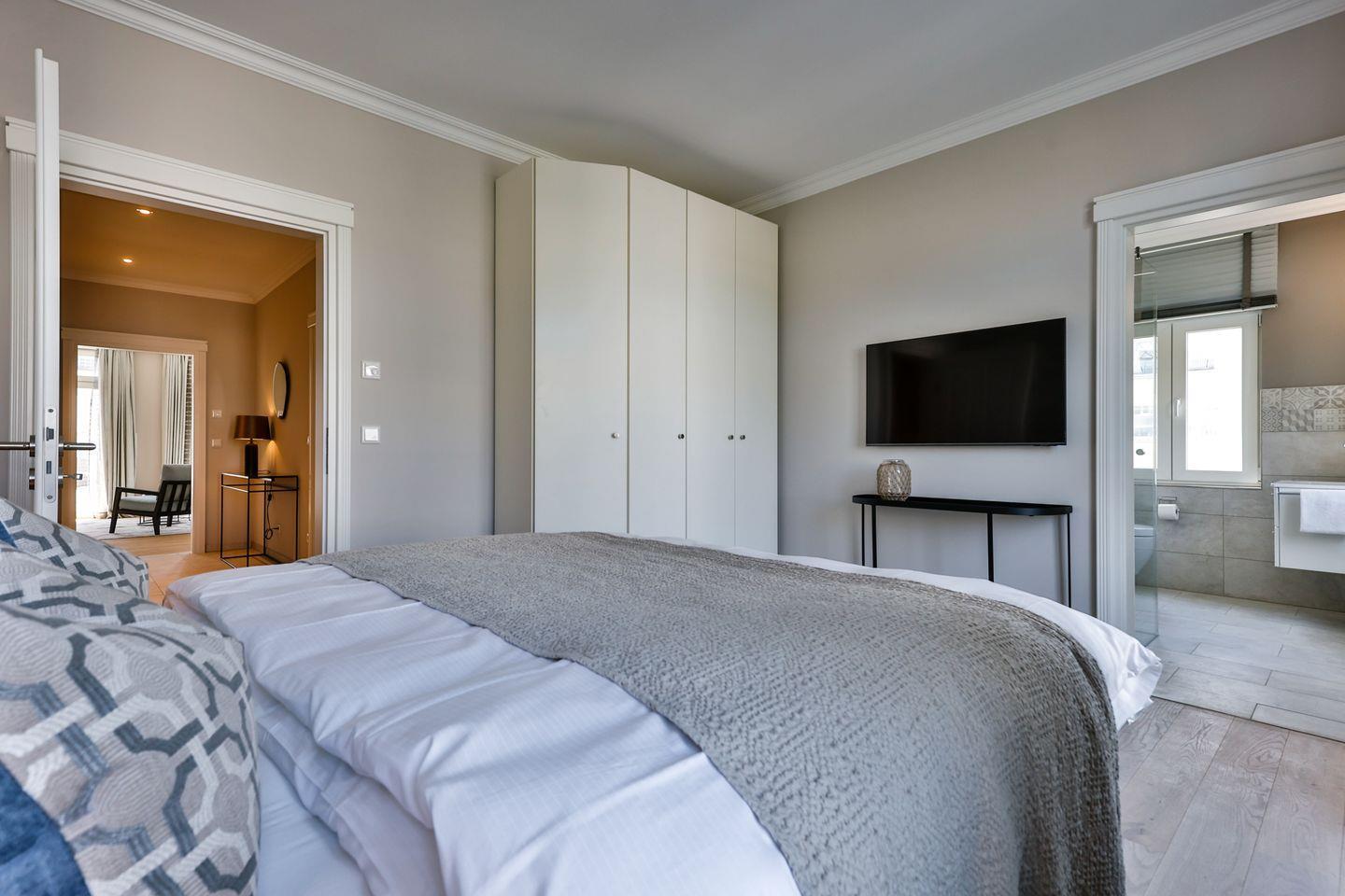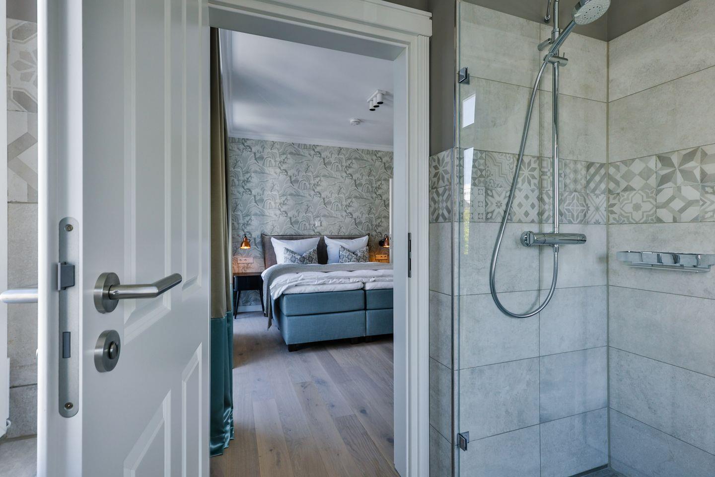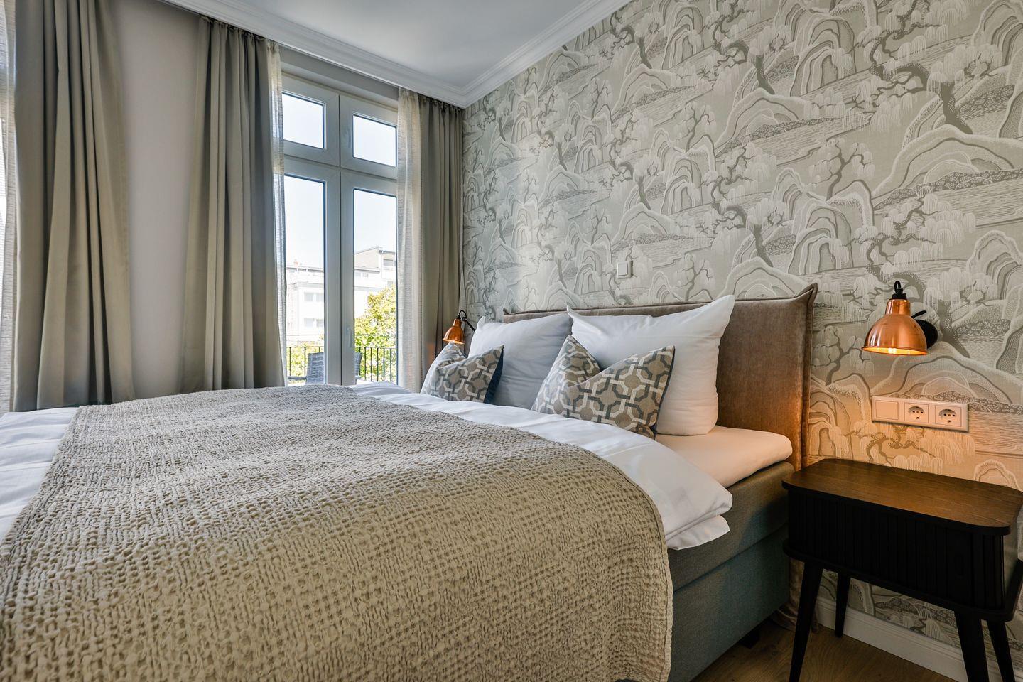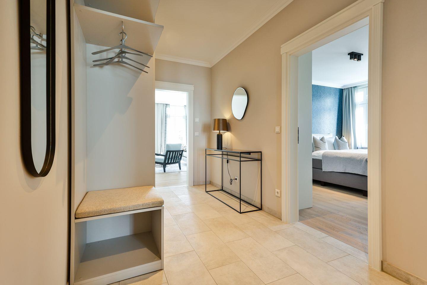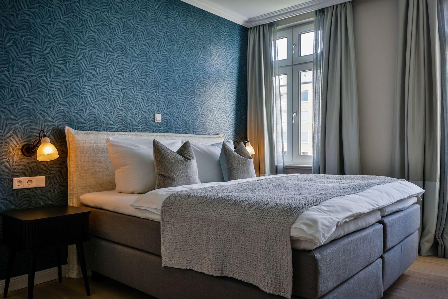 Beide Schlafzimmer sind sehr geschmackvoll eingerichtet und bieten höchsten Schlafkomfort. Das Hauptschlafzimmer ist mit einem Boxspringbett (180x200 cm) und TV ausgestattet. Das zweite Schlafzimmer ist ebenfalls mit einem Boxspringbett (160x200 cm) und TV eingerichtet. Beide Zimmer haben ein ruhiges Ambiente für erholsame Nächste. Die Wohnung bietet zwei moderne Badezimmer, die mit ebenerdigen Duschen, WC und Fön ausgestattet sind; ein Badezimmer hat zusätzlich eine Badewanne zum Entspannen und Wohlfühlen. Abgerundet wird der Bereich durch ein separates Gäste-WC.