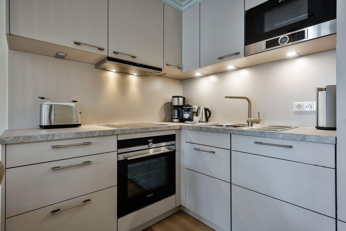 Die offene Küche bietet alles, was Sie in einer Küche erwarten. Hochwertige Elektrogeräte und eine umfangreiche Ausstattung machen das Kochen und Zubereiten zum Genuss. Im angrenzenden Essbereich finden Sie gemütlich Platz für gemeinsame Mahlzeiten und gesellige Runden.