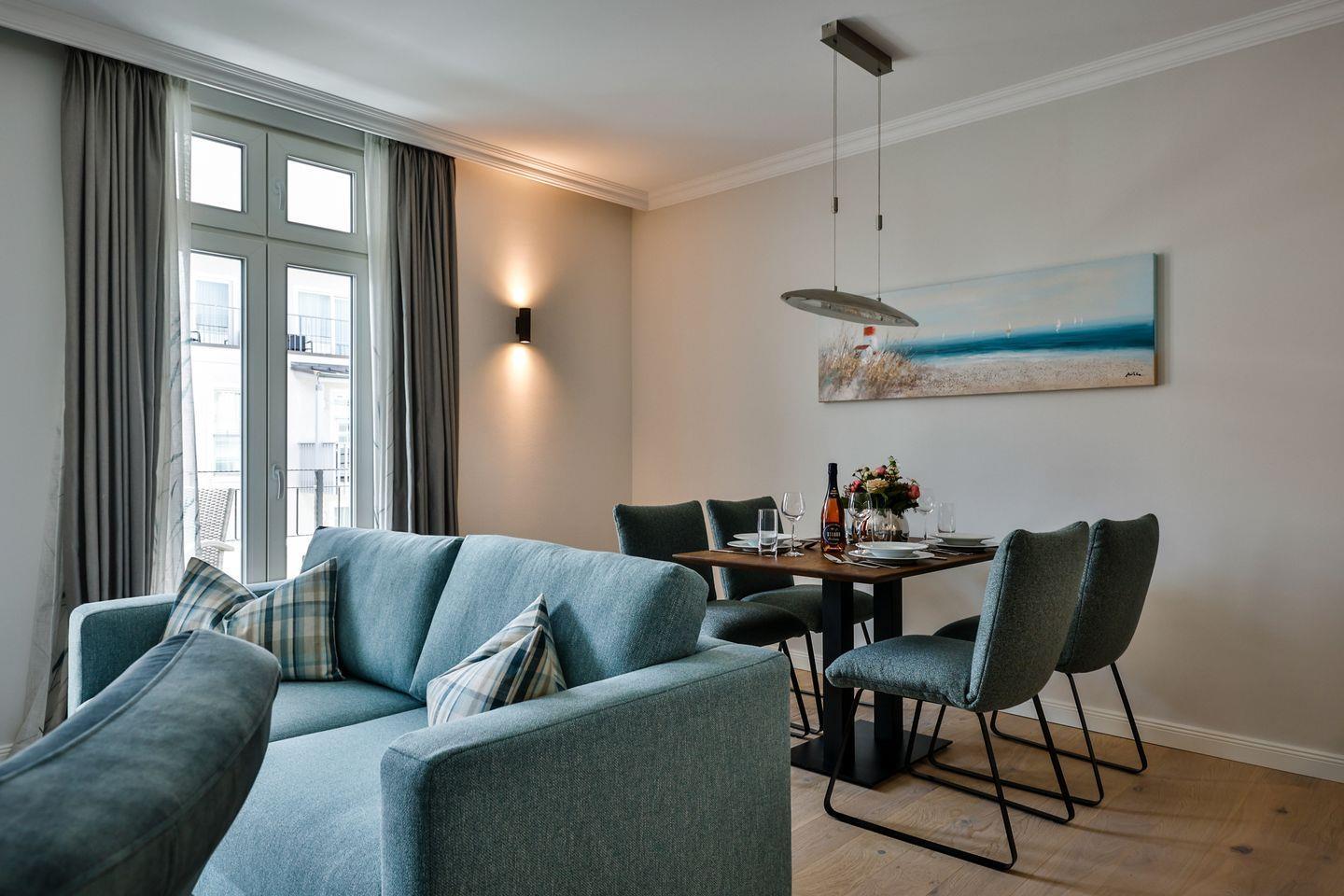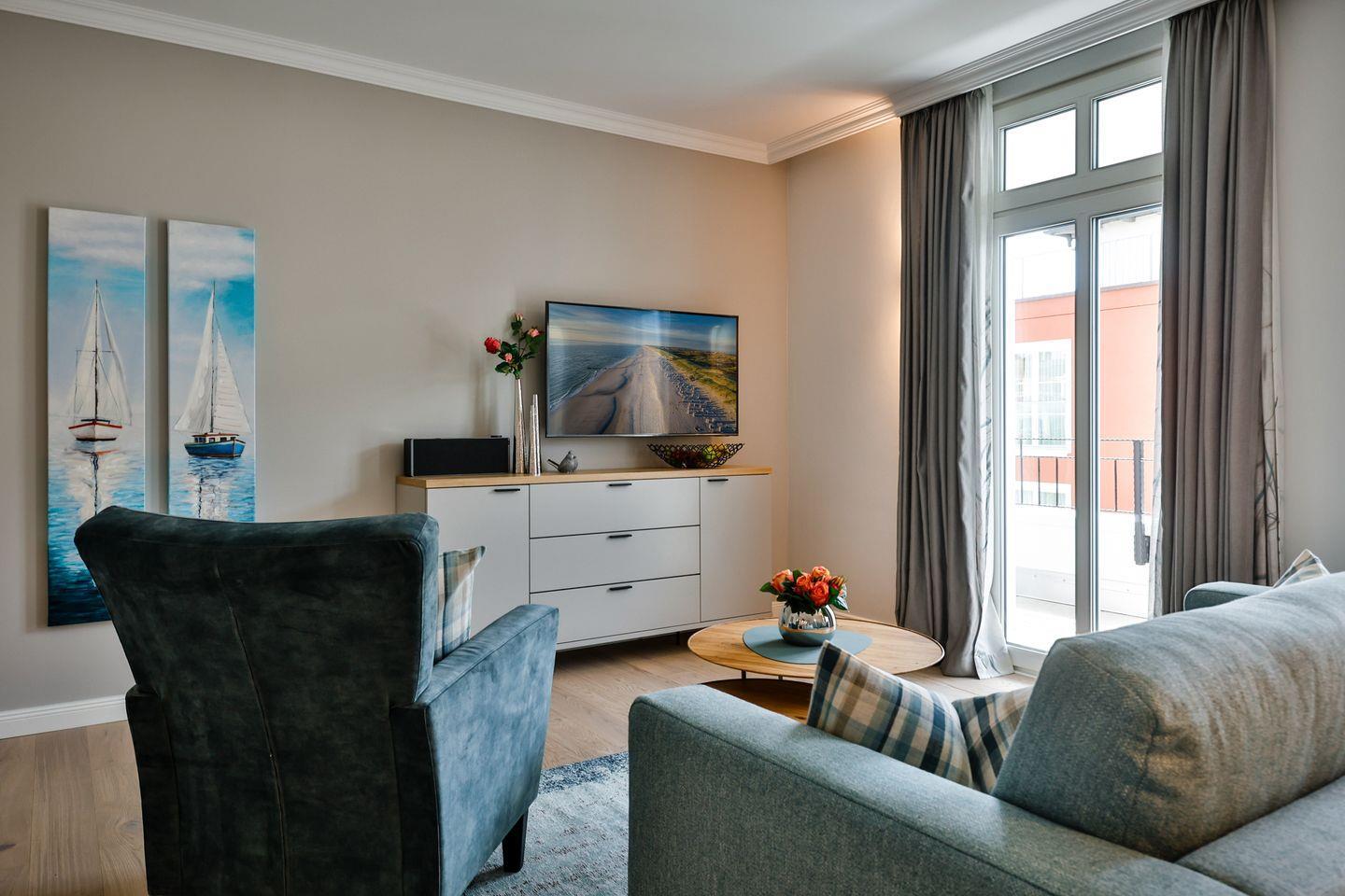 Der lichtdurchflutete Wohn- und Essbereich lädt zum Verweilen ein und führt direkt auf die sonnige Loggia in Südausrichtung. Hier scheint die Sonne zu fast jeder Tageszeit oder Sie lassen dort den Abend gemütlich ausklingen. Die hochwertige Loewe klang s3-Anlage sorgt für ein exklusives Klangerlebnis und bietet Digital-Radio, Bluetooth, CD-Player und USB-Anschlüsse. Ein hochwertiges Funktionssofa (140x200 cm) ist für 1 Erwachsenen oder bis zu 2 Kinder bestens zum Schlafen geeignet. Für eine Buchung mit 2 Erwachsenen und 2 Kindern kontaktieren Sie uns bitte telefonisch oder senden uns eine Email.
