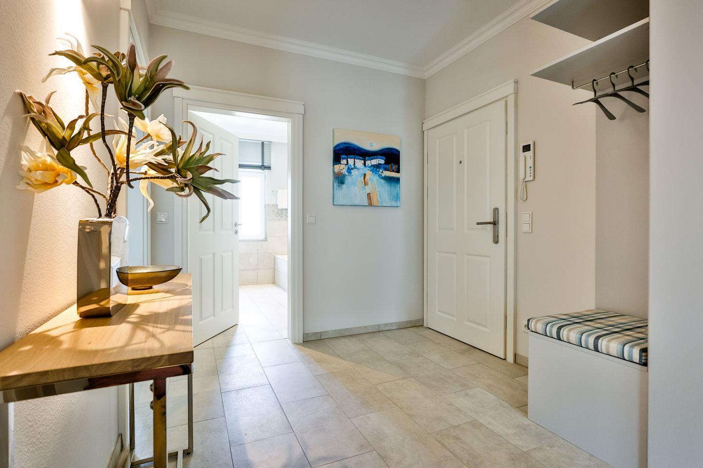Die Ferienwohnung und das Treppenhaus sind barrierefrei gestaltet. Rollstühle und Rollatoren können dort problemlos abgestellt und aufgeladen werden. Die Bäder bieten viel Platz und haben geräumige, ebenerdige Duschen mit bequemer Bewegungsfreiheit. Bitte beachten Sie, dass die Balkonschwelle eine Höhe von 6 cm aufweist und der Zugang daher nicht vollständig barrierefrei ist.