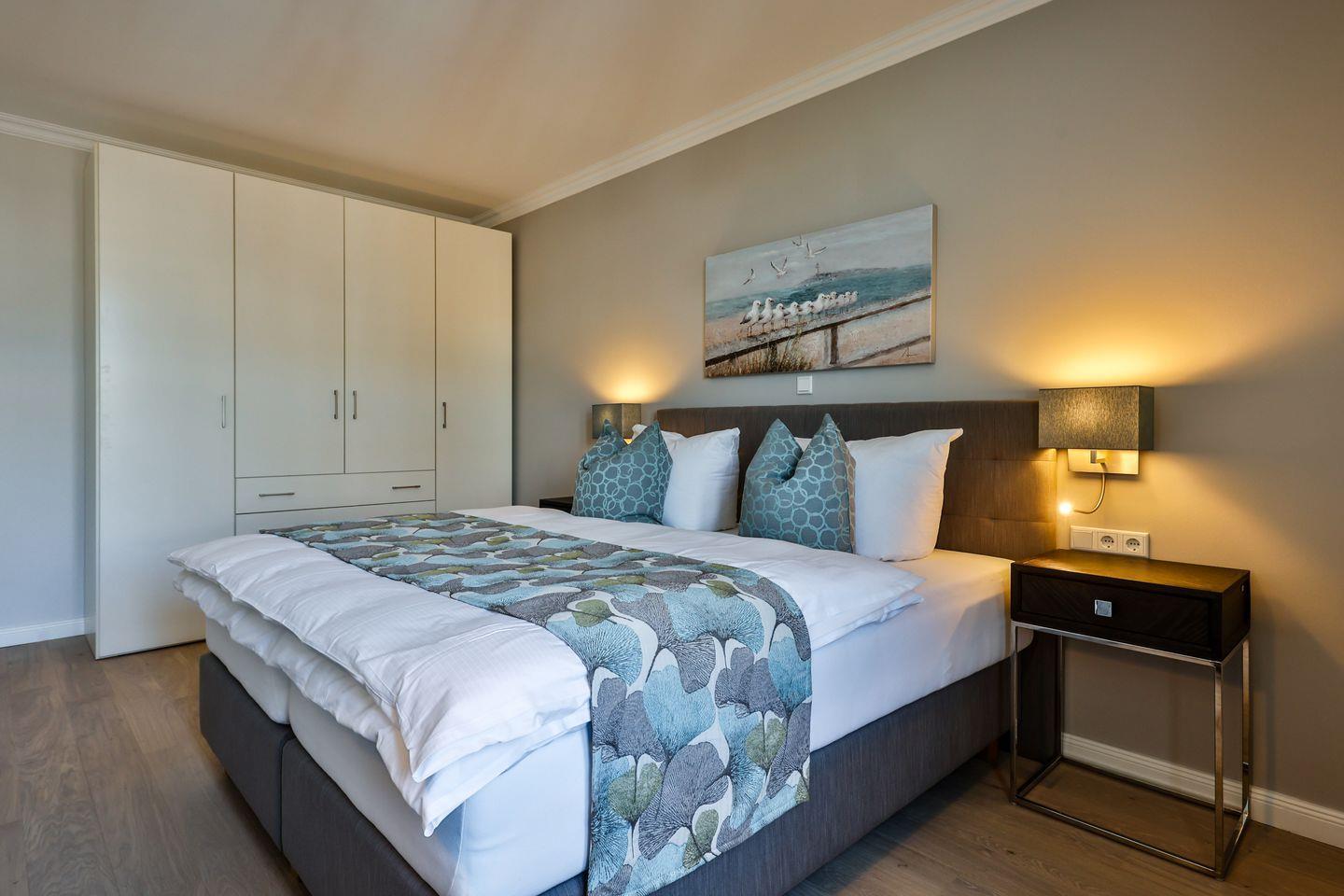 Das Schlafzimmer ist geschmackvoll eingerichtet und bietet höchsten Schlafkomfort mit einem hochwertigen Boxspringbett (180x200 cm) und TV. Ein ruhiges Ambiente sorgt für erholsame Nächte. Im modernen Badezimmer erwarten Sie eine ebenerdige Dusche, WC, Fön und zusätzlich eine Badewanne zum Entspannen und Wohlfühlen.