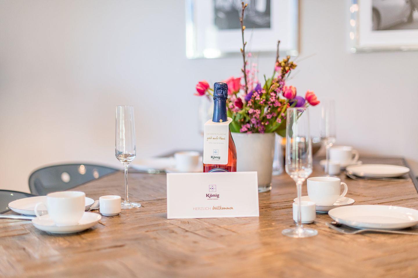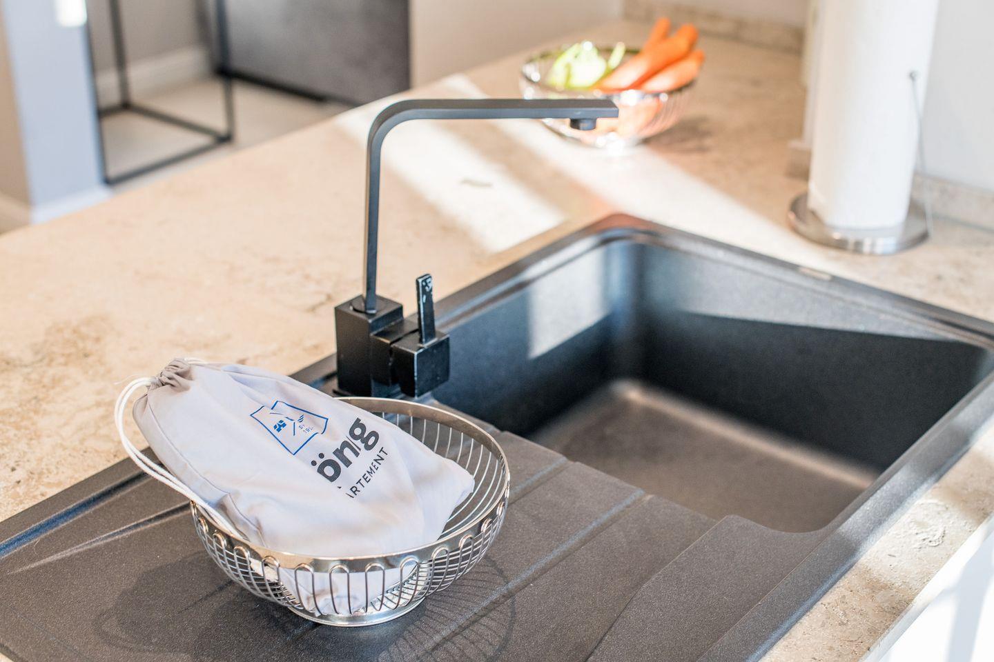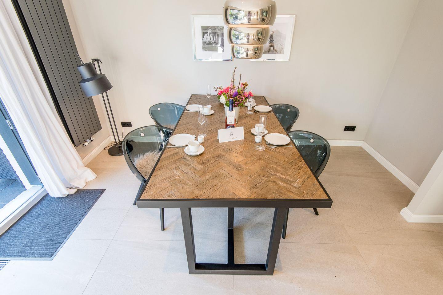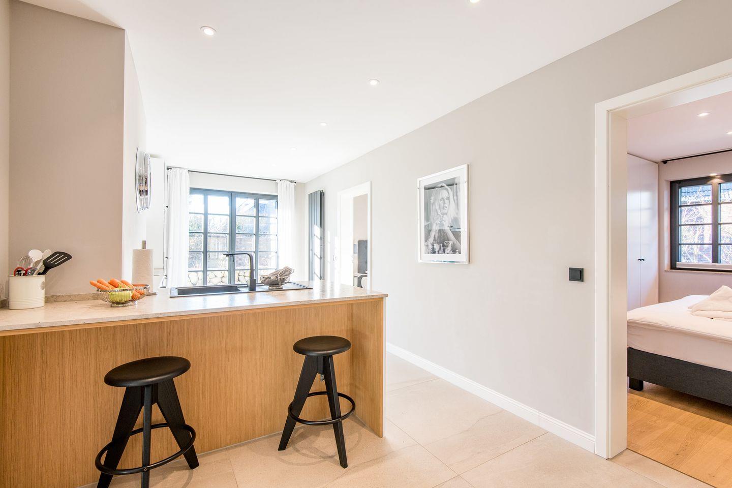 Die moderne, offene Küche ist mit einem Backofen, Geschirrspüler, Filterkaffeemaschine und Nespresso-Maschine ausgestattet und bietet jeden Komfort für Ihre Selbstversorgung. Der angrenzende Essbereich lädt zu gemeinsamen Mahlzeiten ein und ist der ideale Ort für gemütliche Stunden mit Familie oder Freunden.