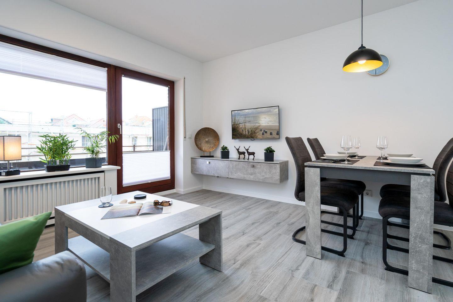 Moderne 3-Zimmer Ferienwohnung für bis zu 4 Personen in strandnaher Lage in Westerland. Inklusive WLAN und zugehörigem PKW-Stellplatz. Haustiere erlaubt.