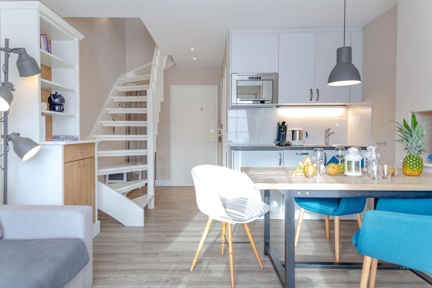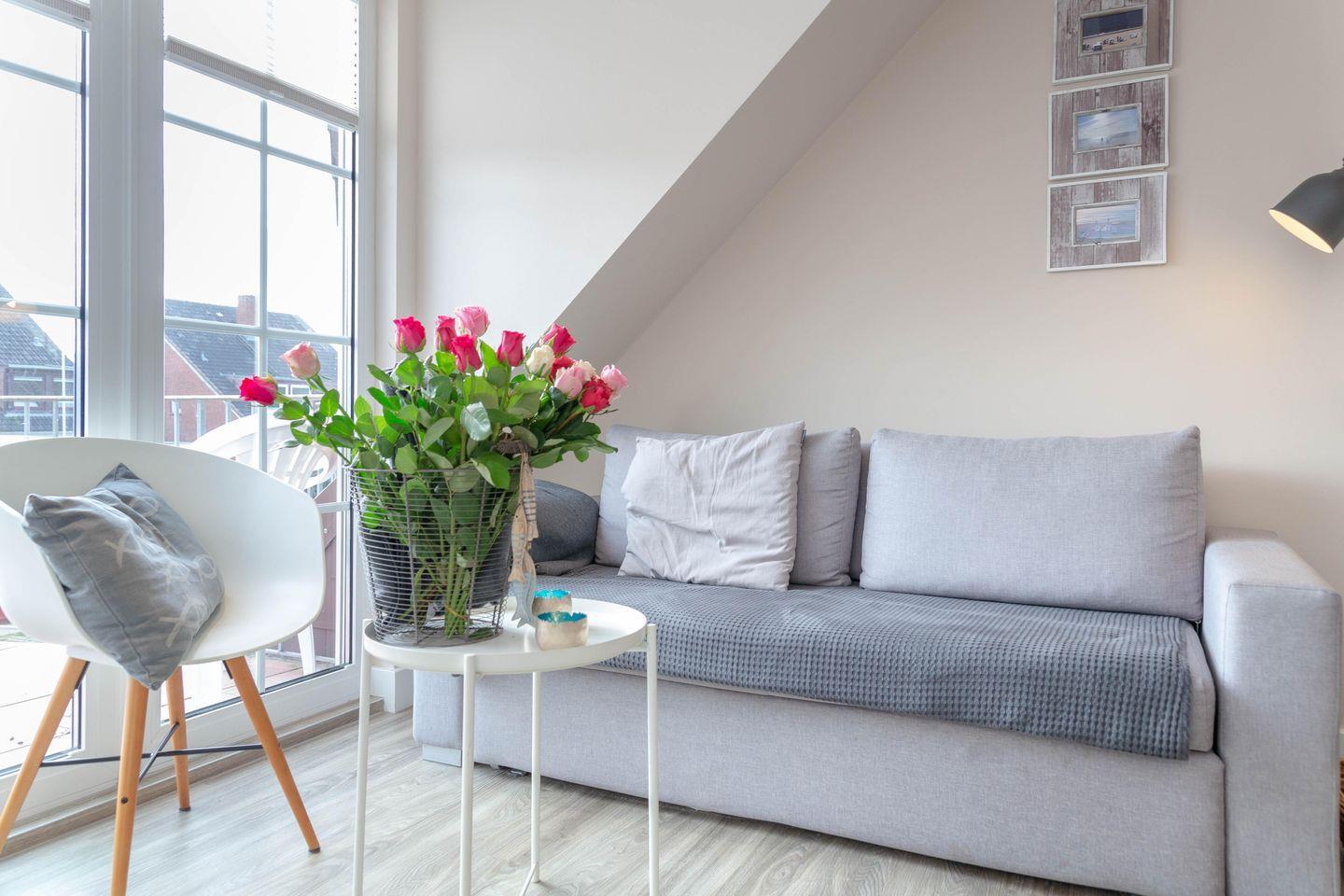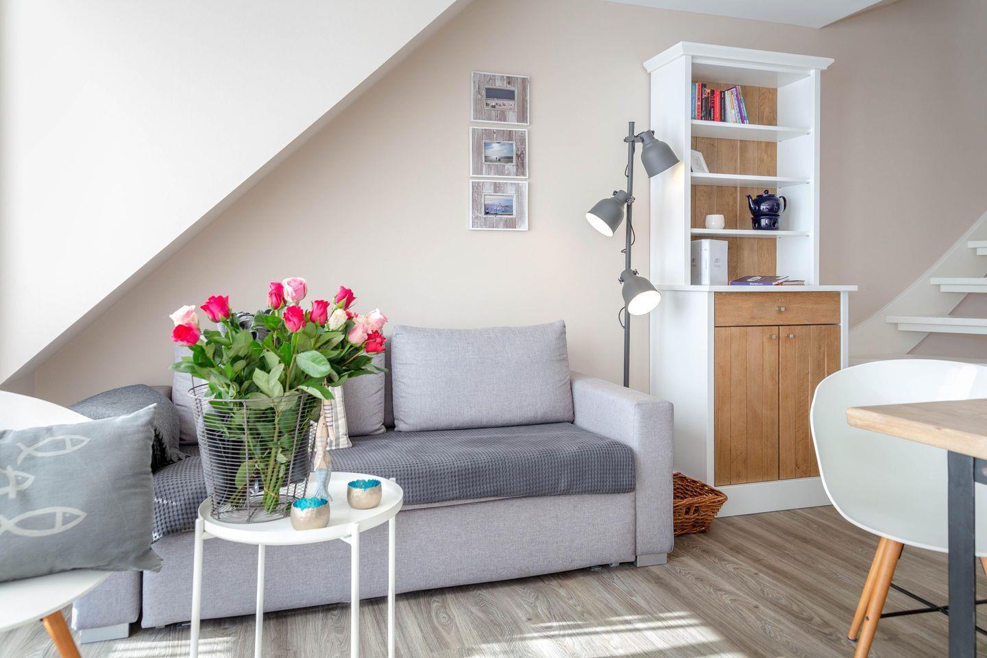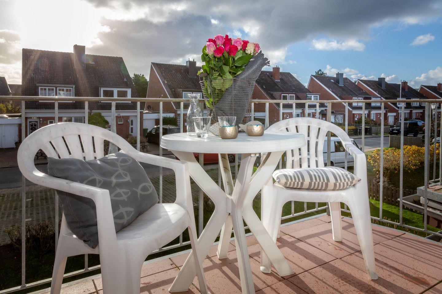 Vor kurzem renovierte 3-Zimmer-Maisonette-Ferienwohnung (Nichtraucher) ca. 48 qm, in der 1. Etage zur Südseite für max. 4 Personen mit Südbalkon