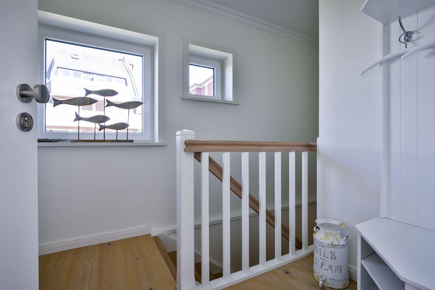 Über eine Treppe gelangen Sie in das Untergeschoss. Das Hell gestaltete