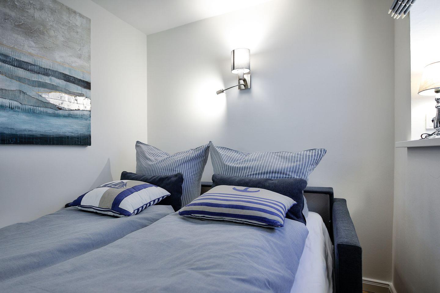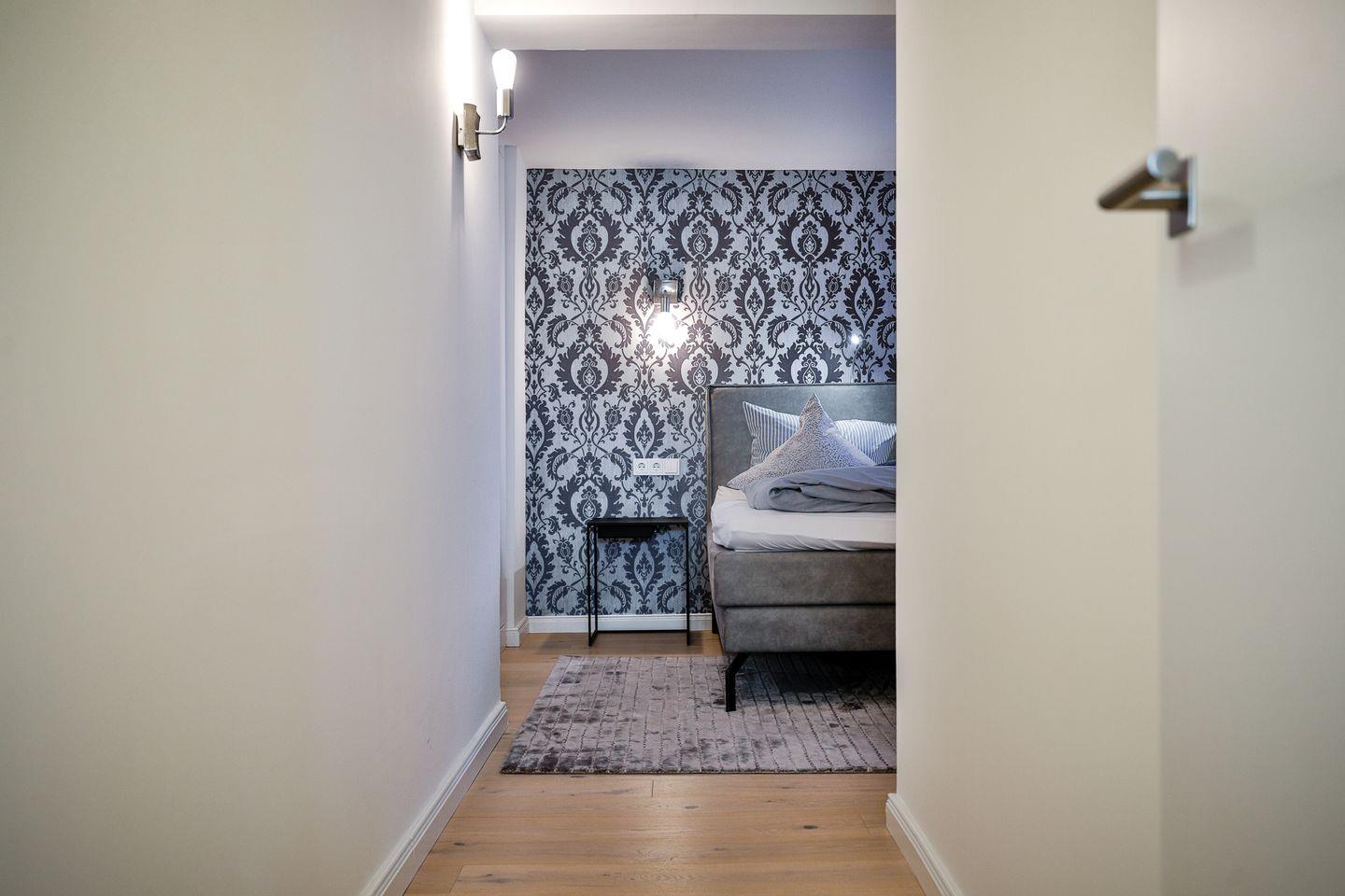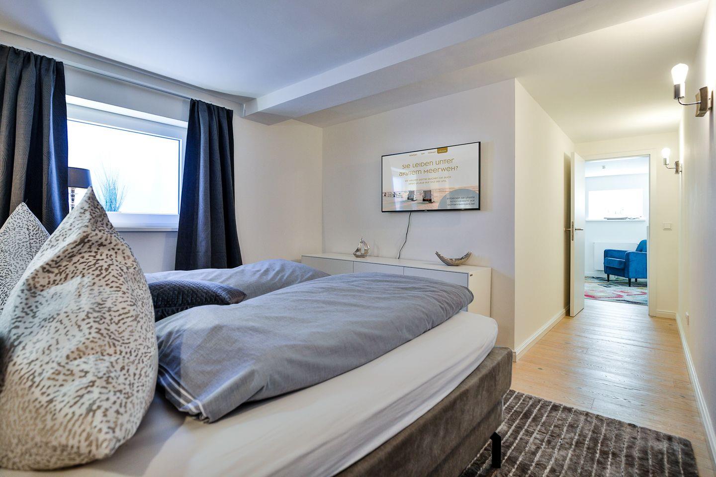 Ein weiteres Schlafzimmer verfügt über ein neues Boxspringbett und ebenfalls