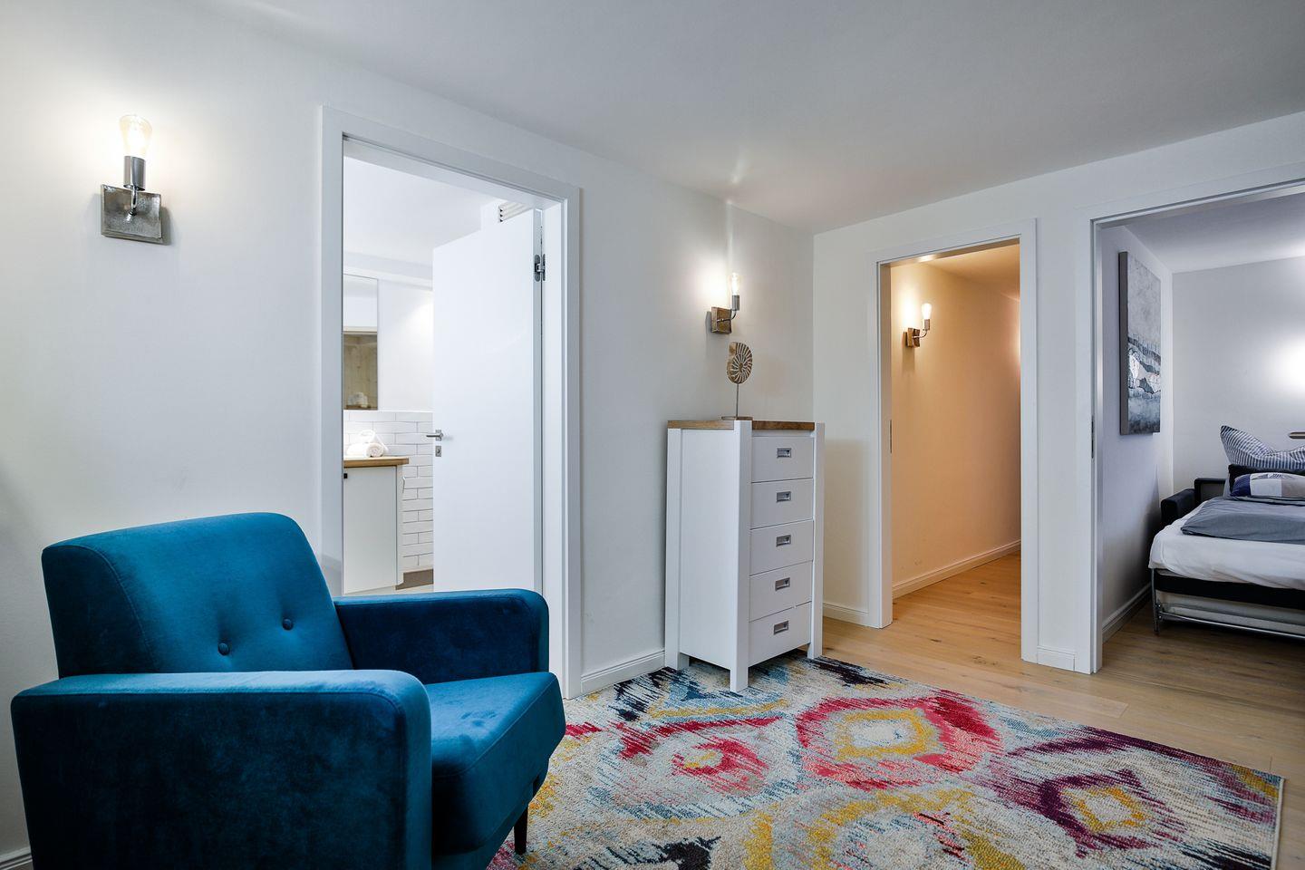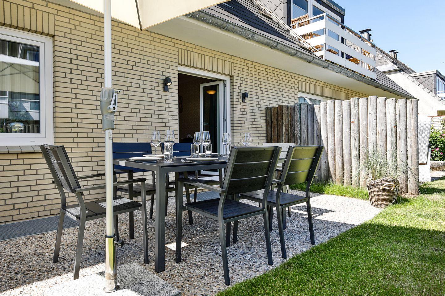 Moderne Ferienwohnung mit Garten und Sauna in absolut strandnaher Lage.