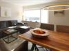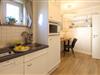 Die Kitchenette im Eingangsbereich ist gut ausgestattet mit einer Mikrowelle, einem Herd und einer Spülmaschine. Ein integrierter Essbereich mit Sitzbank schafft eine gemütliche Atmosphäre für gemeinsame Kochabende.