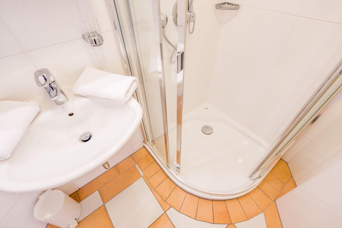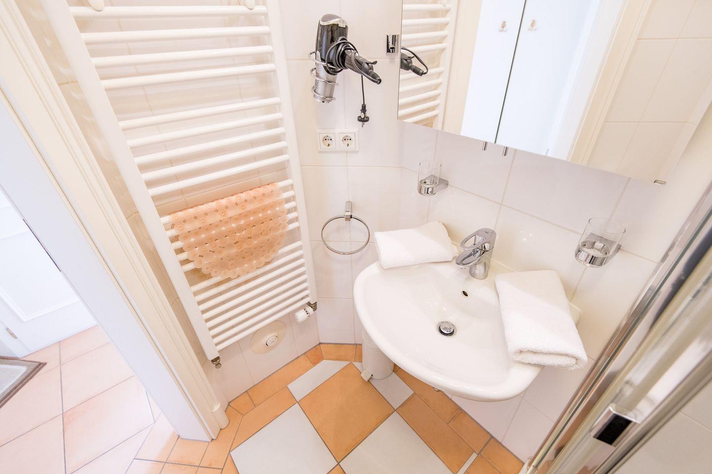 Das Schlafzimmer verfügt über ein Doppelbett (2x 90x200 cm), einen großen Kleiderschrank und einen TV. Hinweis: Die Fenster sind nur teilweise abdunkelbar. Das moderne Badezimmer (Duschbad) ist mit Dusche, WC, Handtuchwärmer und Föhn ausgestattet.