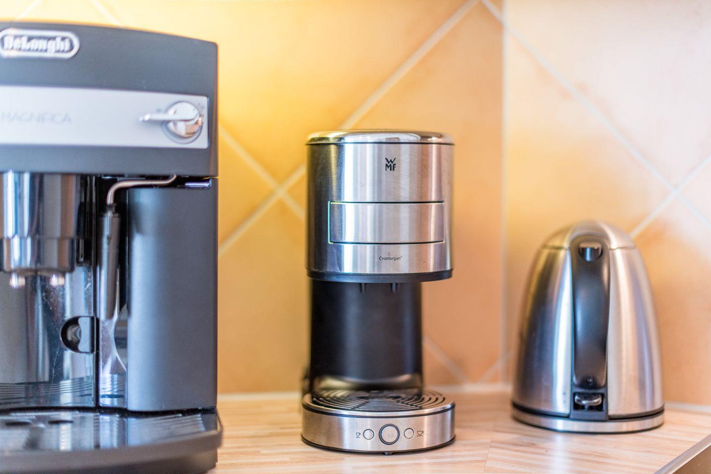 Die moderne Küche ist mit einem 4-flammigen Herd, Geschirrspüler, Filterkaffeemaschine und weiteren Annehmlichkeiten ausgestattet.