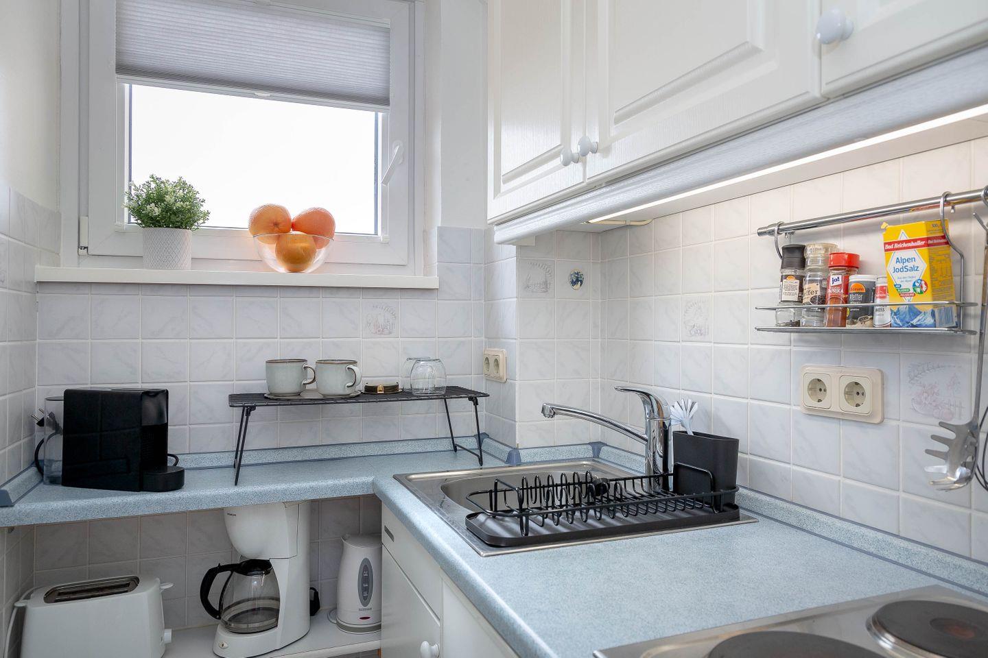 Dieses teilrenovierte Appartement ist für 3 Personen ausgestattet. Zwei Kaffeemaschinen sind hier vorhanden. (Filterkaffee und Nespresso), Bügelbrett mit Bügeleisen, Bluetooth, Wlan Radio sowie Smart TV.
