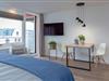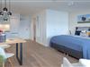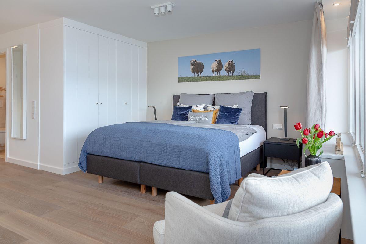 Nächtigen Sie im großen und komfortablen Boxspringbett und entspannen Sie sich auf den bequemen Polstermöbeln.