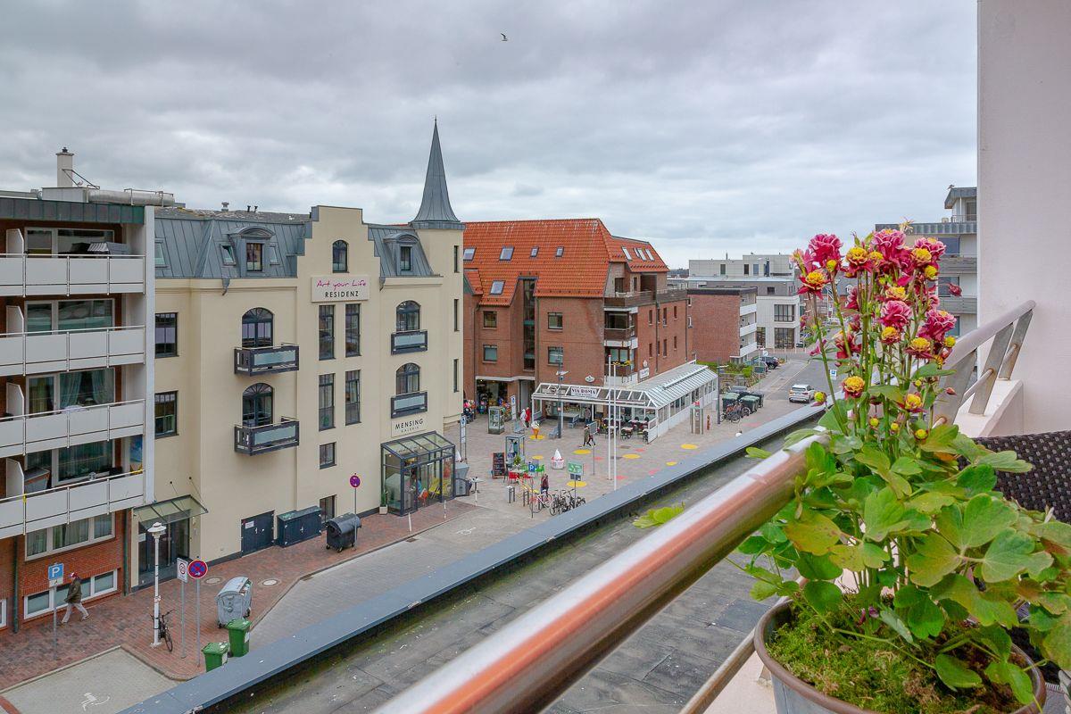 Der Balkon ist nach Osten ausgerichtet, sodass Sie hier in Ruhe morgens die Sonne genießen können, bevor Sie in Ihren aktiven Urlaubstag starten. Von hier aus haben Sie Aussicht auf die bekannte Friedrichstraße mit ihrem schillernden Leben.