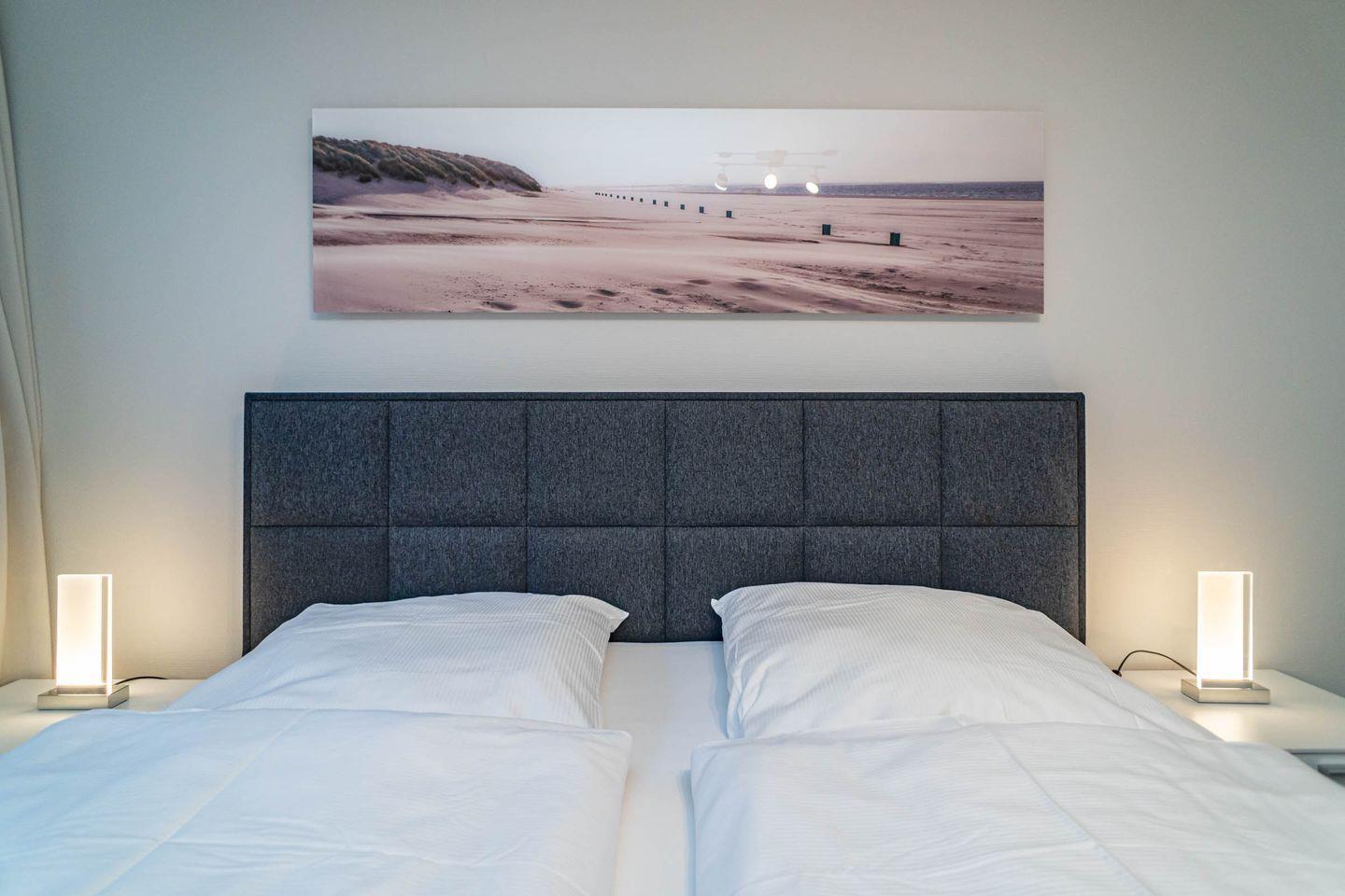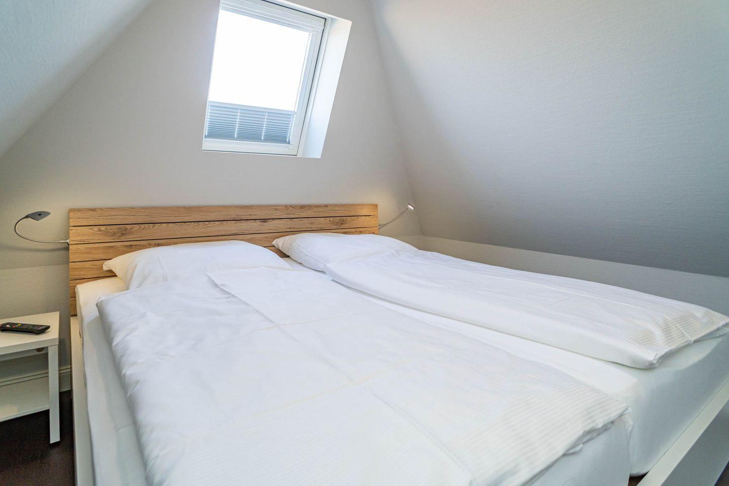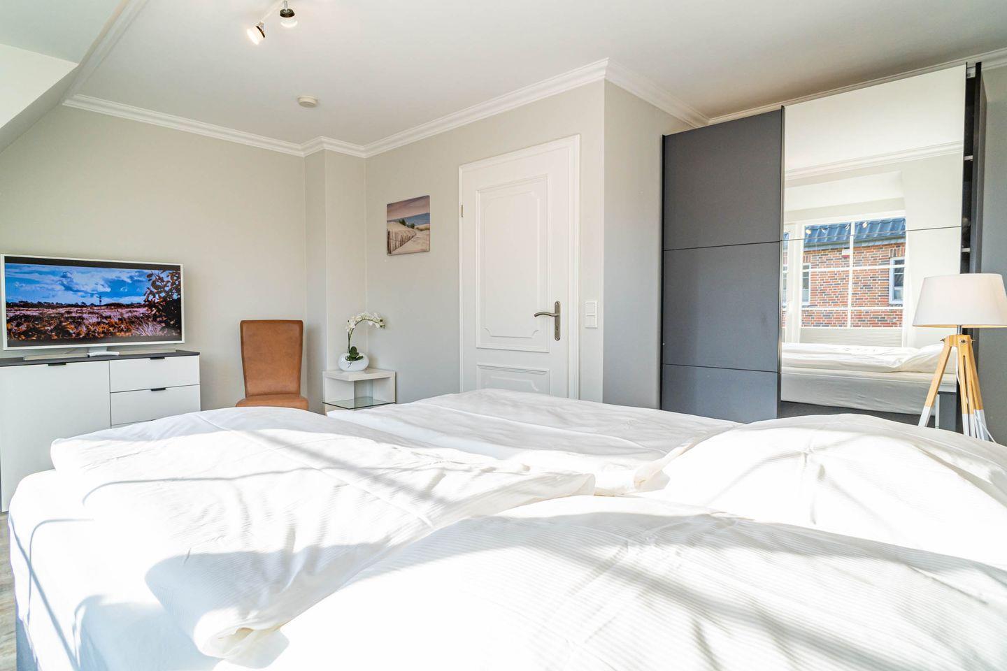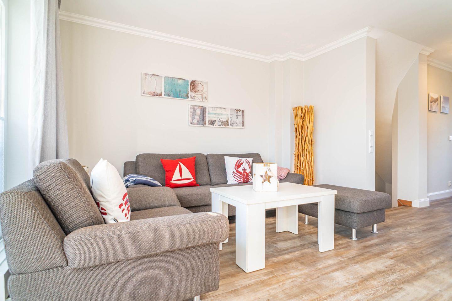Im Erdgeschoss befindet sich ein gemütliches Wohn- und Esszimmer mit offener Küche. Vom Wohnzimmer mit Sofa, Sessel und TV haben Sie Zutritt zur nach Süden ausgerichteten Terrasse mit Gartenmöbeln und Strandkorb (saisonal). Im Garten befindet sich ebenfalls die Sauna. Die offene Küche ist ausgestattet mit einem Kühlschrank, Kaffeefiltermaschine, Kaffeevollautomaten, Gefrierfach, Toaster und Geschirrspüler. Über eine Treppe gelangen Sie in das Untergeschoss/Souterrain. Hier befindet sich ein Badezimmer mit Dusche, WC, Waschtisch, Handtuchtrockner und ein Waschtrockner. Ebenso ein Schlafzimmer mit Boxspringbett, TV, Spiegel und Kleiderschrank. Im ersten Obergeschoss finden Sie das 2. Schlafzimmer mit Doppelbett, TV, Kleiderschrank und Südbalkon auch hier gibt es ein Badezimmer mit Dusche, WC und Handtuchtrockner. Im Dachgeschoss befindet sich das 3. Schlafzimmer mit einem Doppelbett und TV. Ein PKW Stellplatz steht Ihnen am Haus zur Verfügung. Sollten Sie mit mehreren Autos anreisen, besteht die Möglichkeit kostenfrei in der Straße an der Seite zu parken.