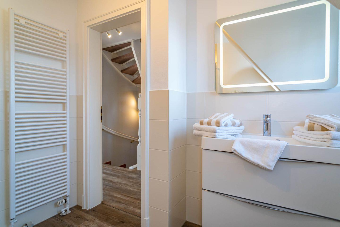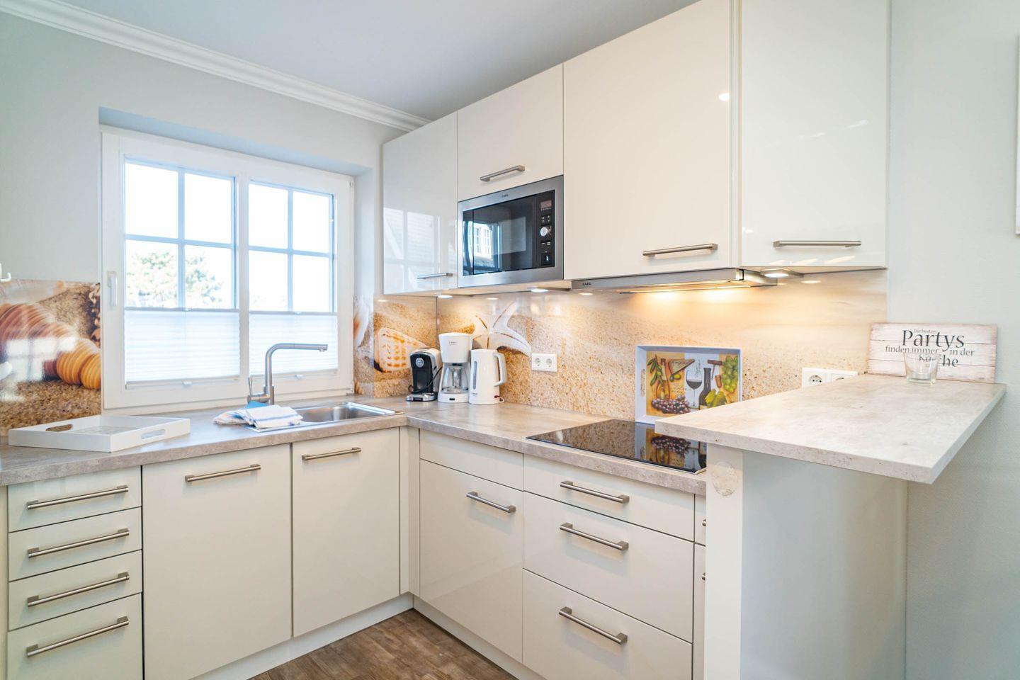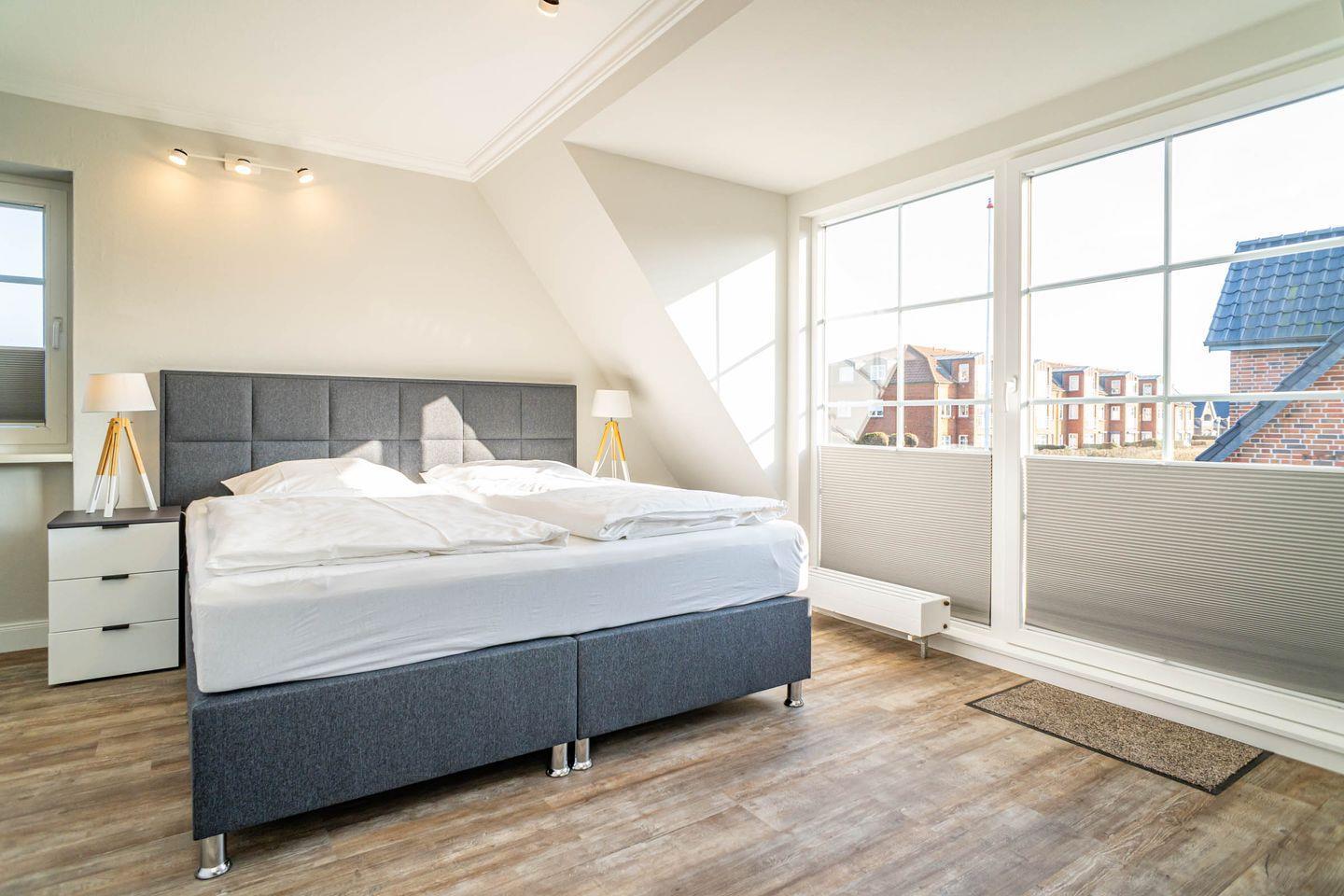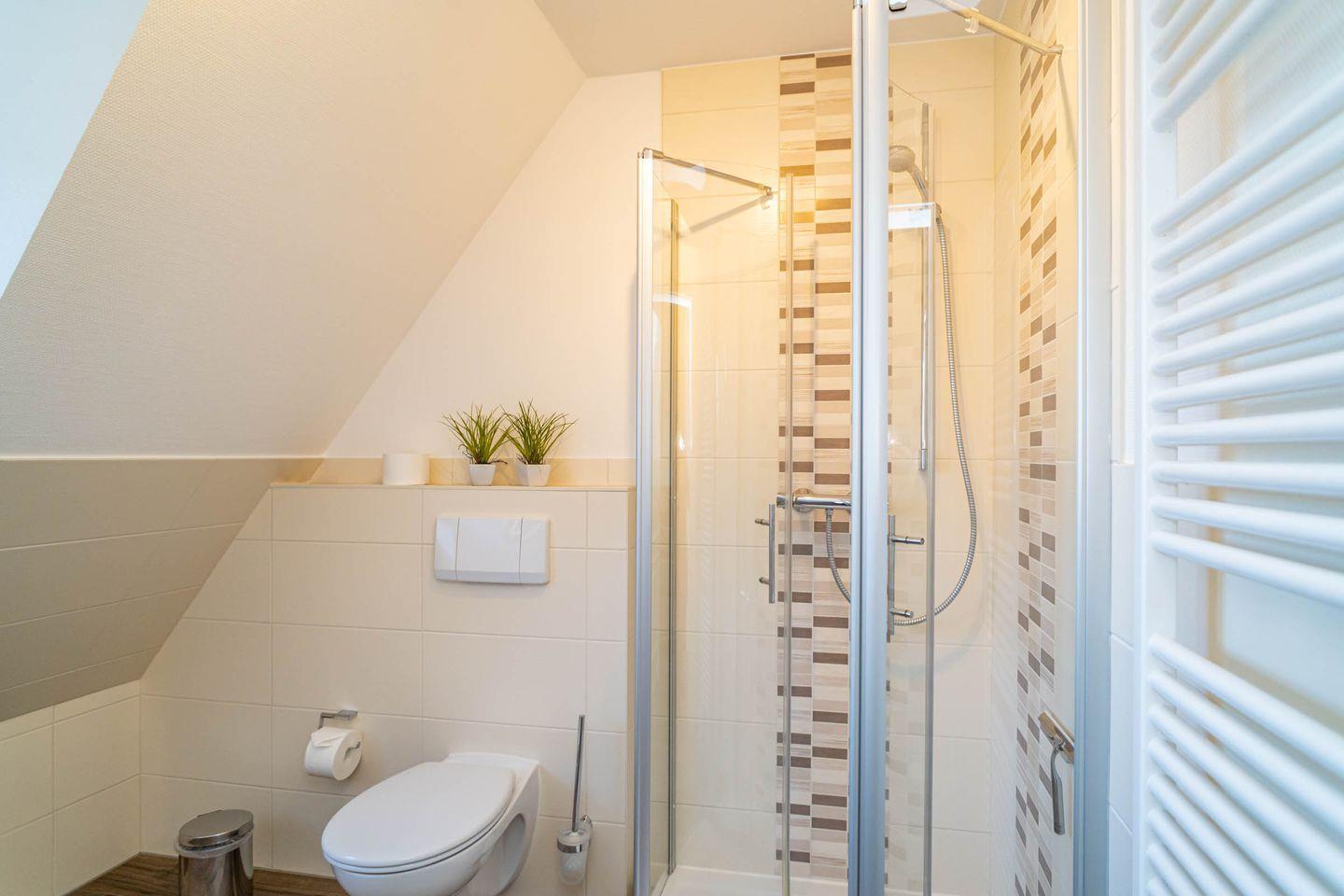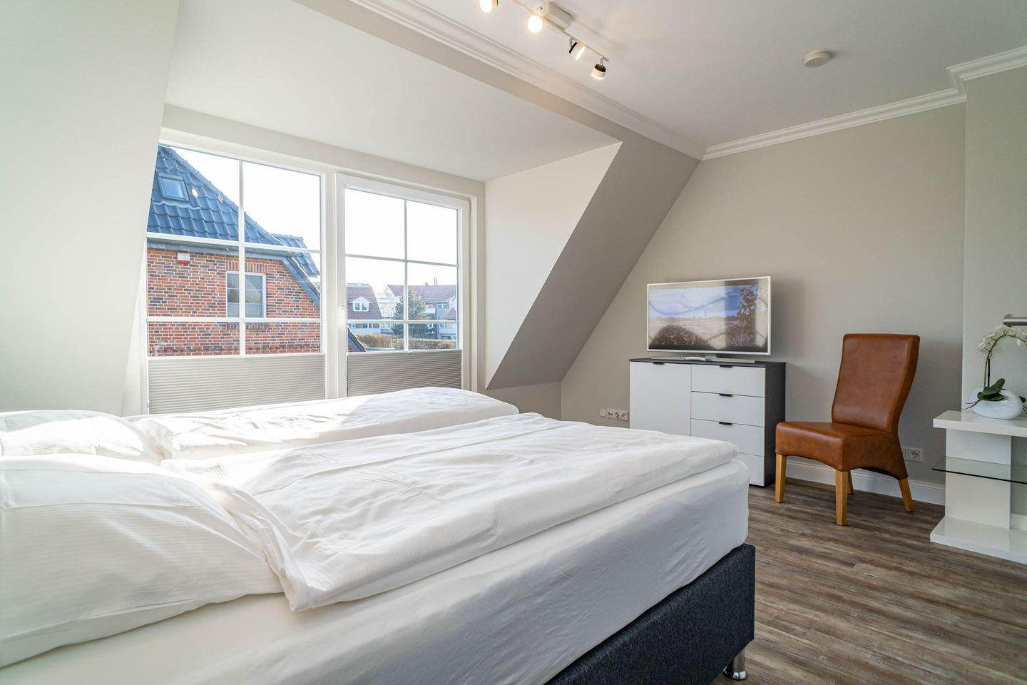 Im Erdgeschoss befindet sich ein gemütliches Wohn- und Esszimmer mit offener Küche. Vom Wohnzimmer mit Sofa, Sessel und TV haben Sie Zutritt zur nach Süden ausgerichteten Terrasse mit Gartenmöbeln und Strandkorb (saisonal). Im Garten befindet sich ebenfalls die Sauna. Die offene Küche ist ausgestattet mit einem Kühlschrank, Kaffeefiltermaschine, Kaffeevollautomaten, Gefrierfach, Toaster und Geschirrspüler. Über eine Treppe gelangen Sie in das Untergeschoss/Souterrain. Hier befindet sich ein Badezimmer mit Dusche, WC, Waschtisch, Handtuchtrockner und ein Waschtrockner. Ebenso ein Schlafzimmer mit Boxspringbett, TV, Spiegel und Kleiderschrank. Im ersten Obergeschoss finden Sie das 2. Schlafzimmer mit Doppelbett, TV, Kleiderschrank und Südbalkon auch hier gibt es ein Badezimmer mit Dusche, WC und Handtuchtrockner. Im Dachgeschoss befindet sich das 3. Schlafzimmer mit einem Doppelbett und TV. Ein PKW Stellplatz steht Ihnen am Haus zur Verfügung. Sollten Sie mit mehreren Autos anreisen, besteht die Möglichkeit kostenfrei in der Straße an der Seite zu parken.