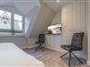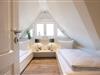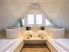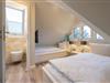 Im Obergeschoss finden Sie das erste Schlafzimmer mit Doppelbett (2x 90x200 cm), Kleiderschrank und TV. Dieses Schlafzimmer verfügt über ein eigenes en suite Badezimmer. Das zweite Schlafzimmer im Dachgeschoss ist mit zwei Einzelbetten (je 90x200 cm), einem Einbauschrank und einem TV ausgestattet und verfügt ebenfalls über ein eigenes WC mit kleinem Waschbecken.